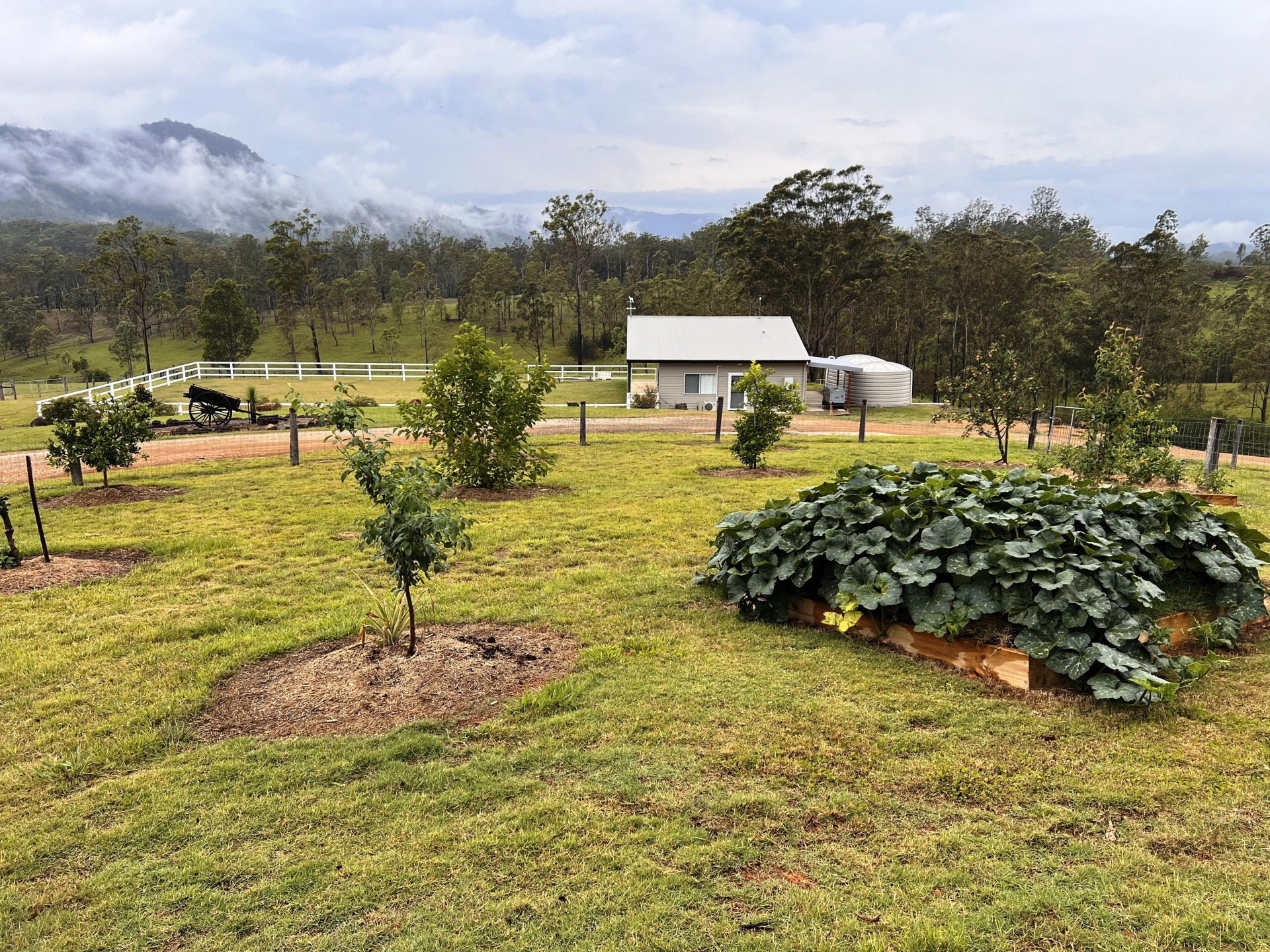 A private cabin with screened verandah, full bathroom with walk in shower and storage provides a place for visitors, family or the ecotourism venture. The cabin has a fully equipped kitchen adjoining the verandah and scenic views. Fully fenced with dog wire and its own outdoor fire pit. A 7kW solar reverse cycle air-conditioner and wood heater provide comfortable accommodation. Internet service is also available.