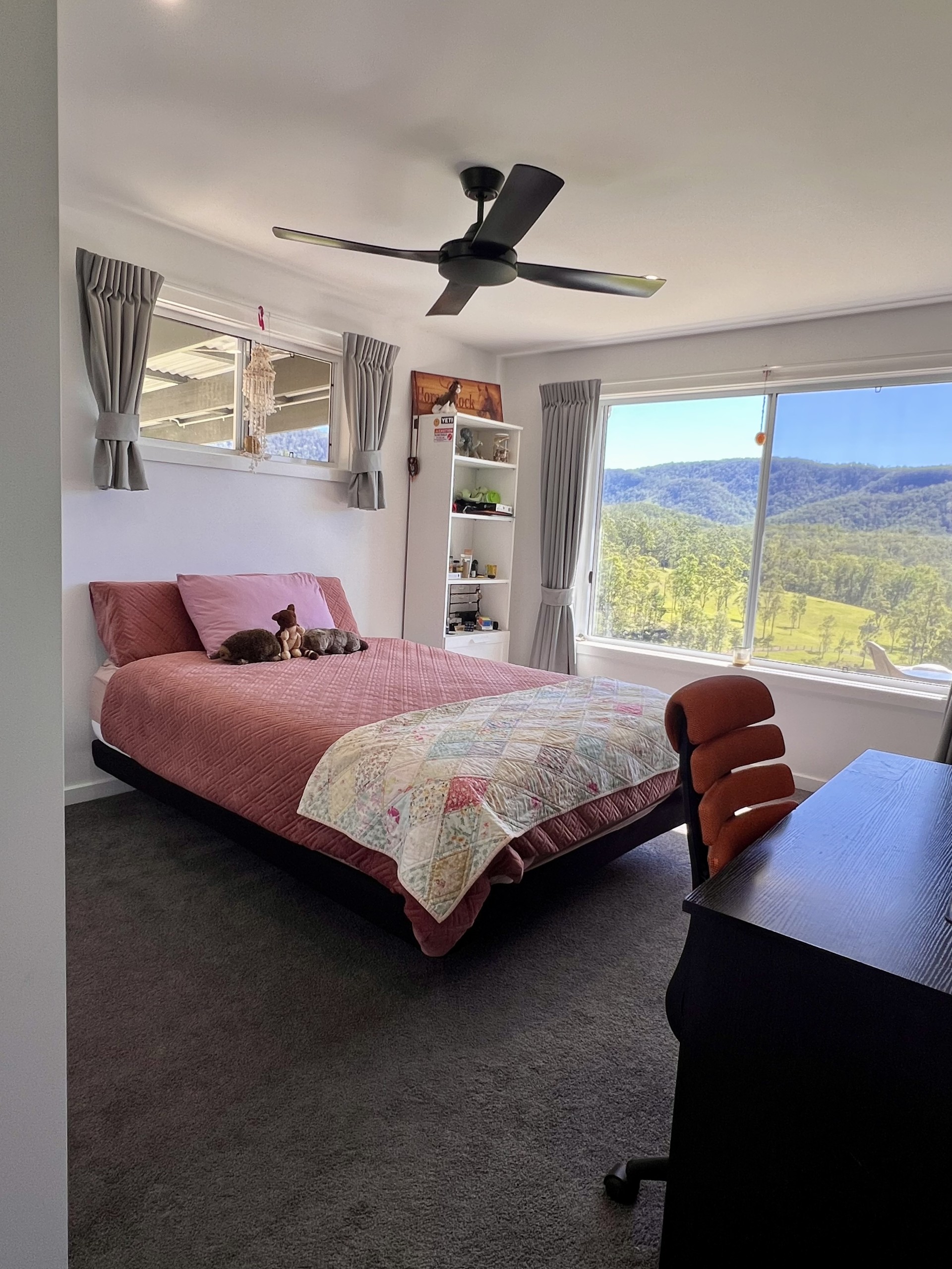 The northeast facing main homestead has been designed to capture the stunning views from every angle. Only three years old the passive solar designed creates a functional home suited to every season. Boasting three king size bedrooms, two bathrooms and two living areas there is space for everyone. The design has catered for privacy for the master bedroom with large walk-in robe and full ensuite.