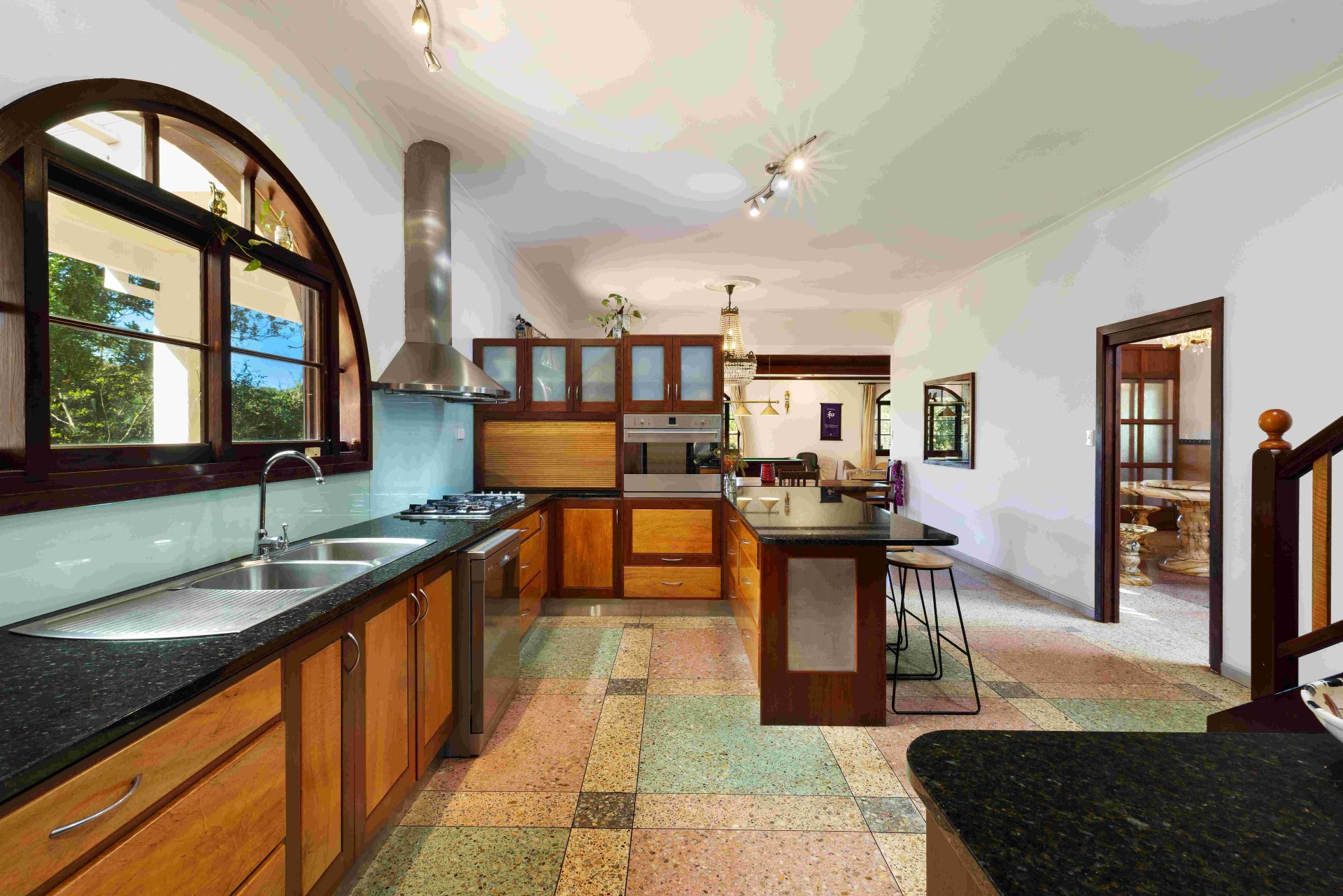 THE VILLA: Terrazzo marble, hand-painted Italian tiles, glass atrium, rosewood, cedar and other rare timber finishes, 6-7 bedrooms, spa, cinema, gourmet commercial kitchen, pool, outside bath, extensive living and entertaining spaces, established landscaped gardens with lighting, extensive stone walls, bronze and stone fountains and powered underground cellar. Opportunity to expand number of en-suites.