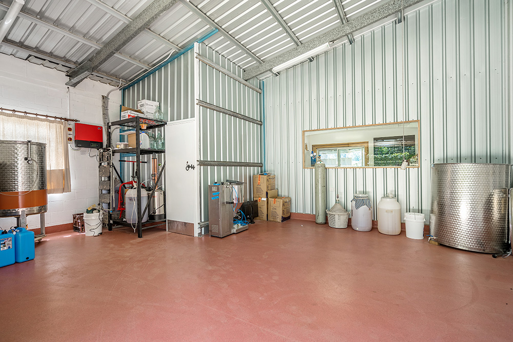 COMMERCIAL BUILDING: Concrete block and cement building across multiple levels that includes; basic commercial kitchen, cold room, brewing/bottling/food production area, al-fresco dining area, commercial wood-fired brick oven, mezzanine office/storage, lower storage or future cellar, distillery or accommodation space? Accessible bathroom.