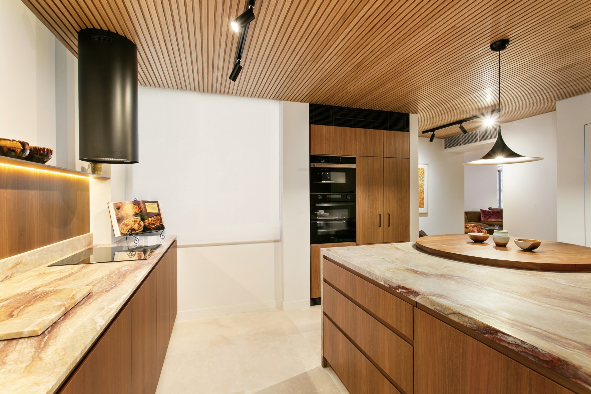 - Large modern kitchen with ample bench, cupboards, and a built-in pantry