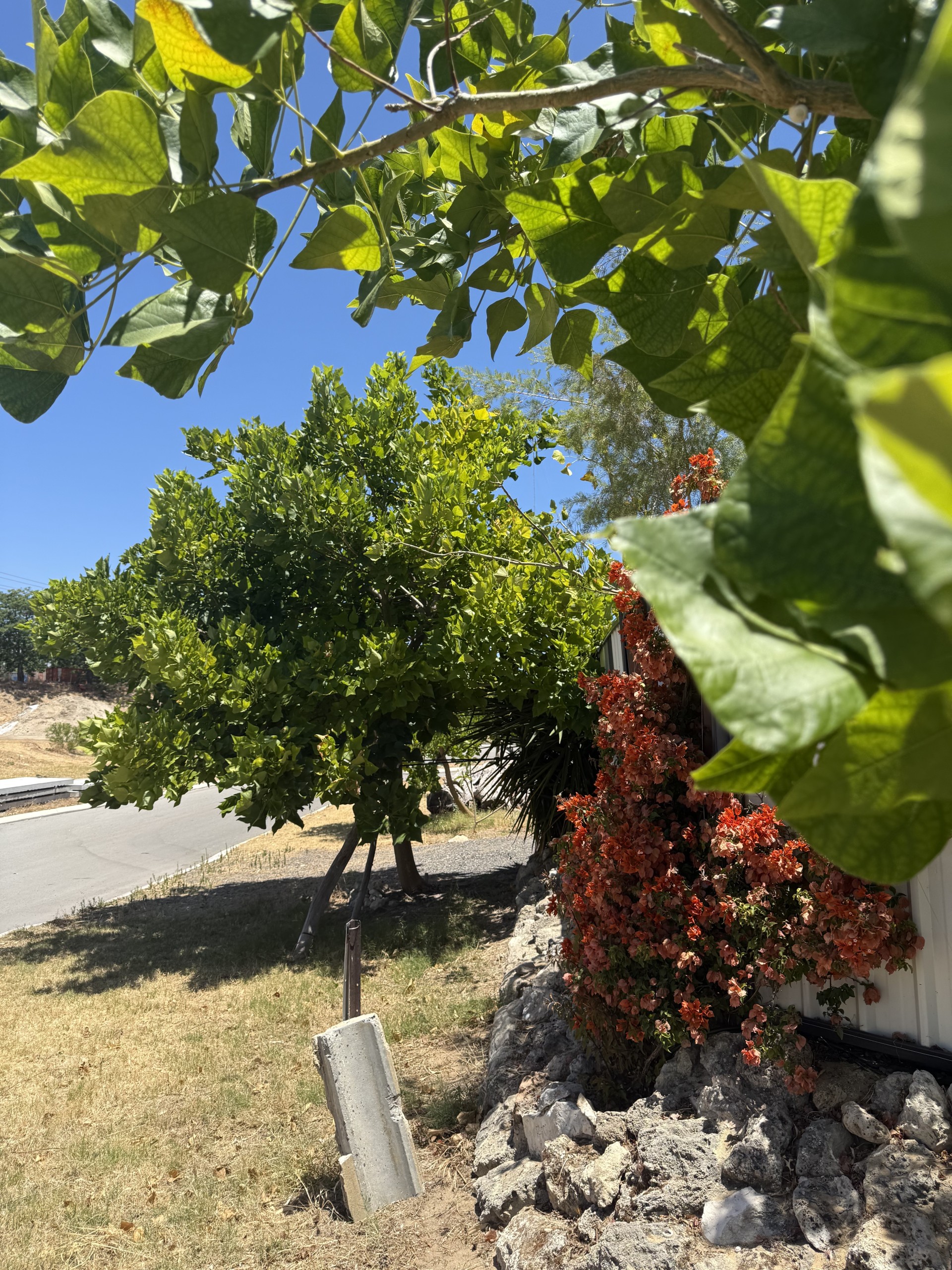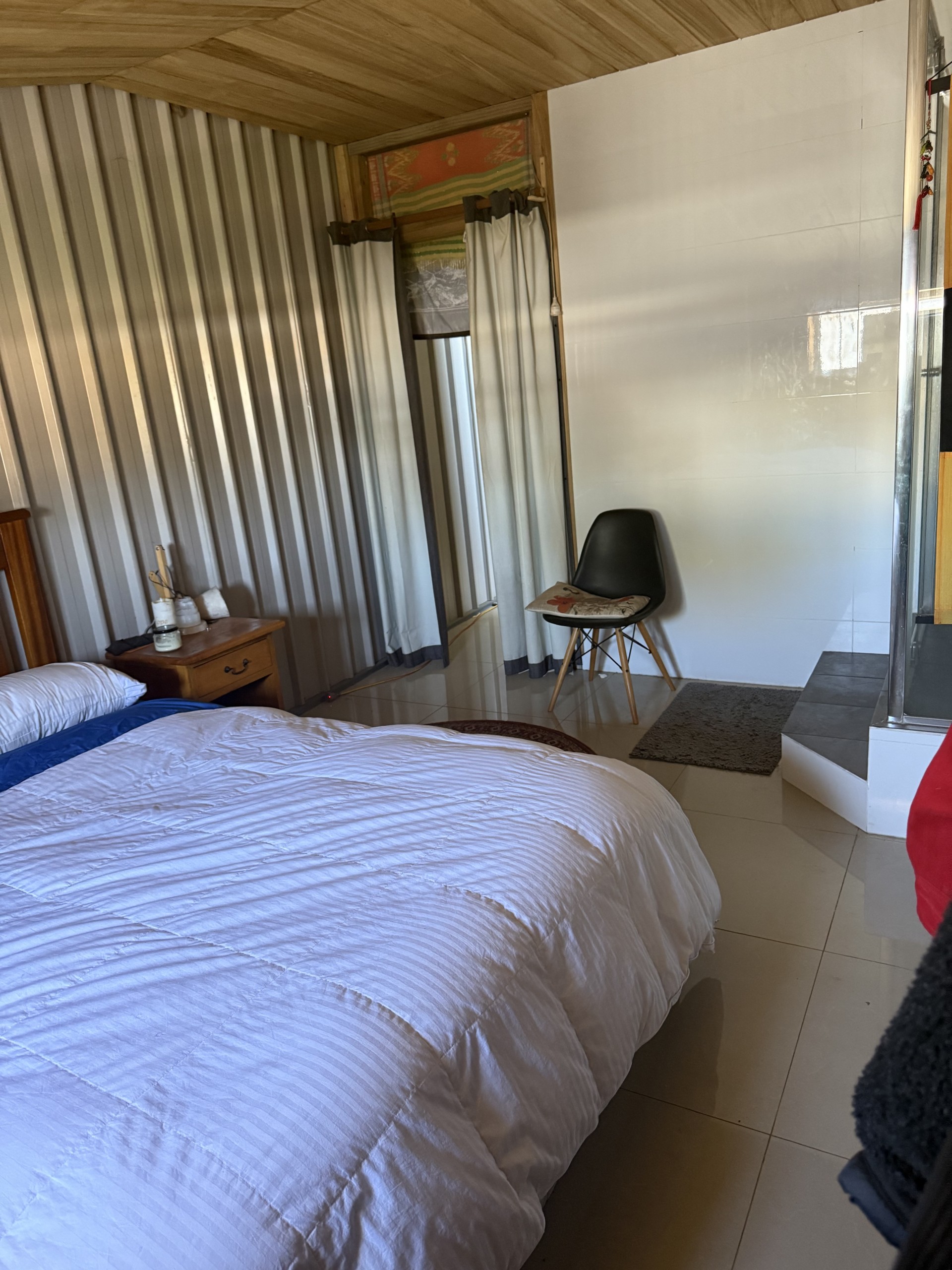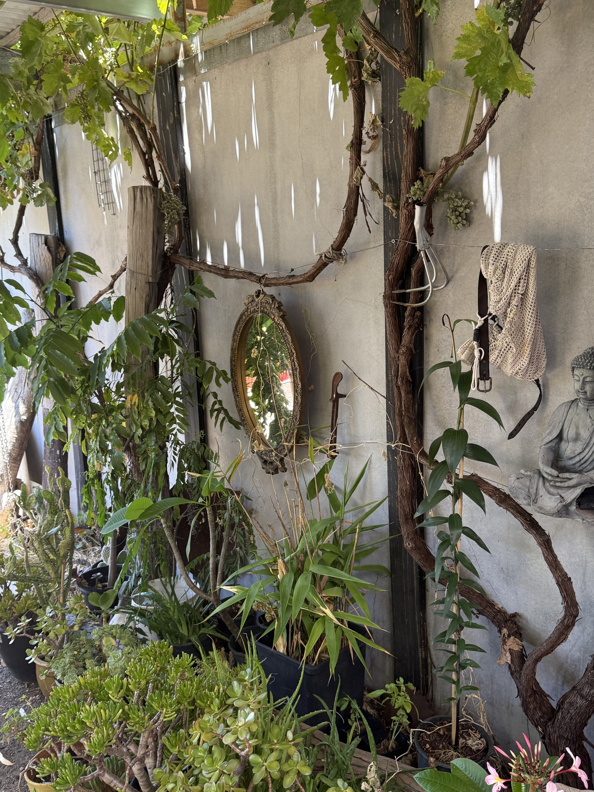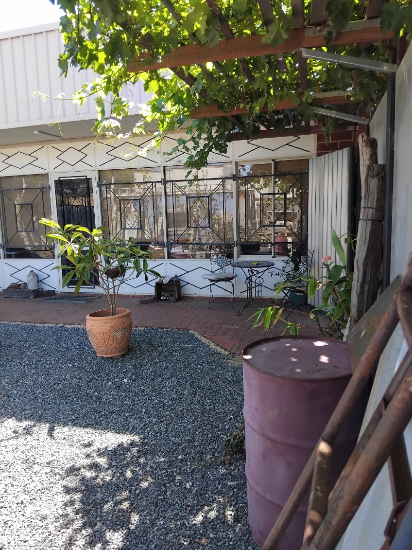 At the private art garden area there is a tasteful outdoor lounge room with a fire place which is protected with a forrest of trees and vines.. this funky area is ready for so many design of business.