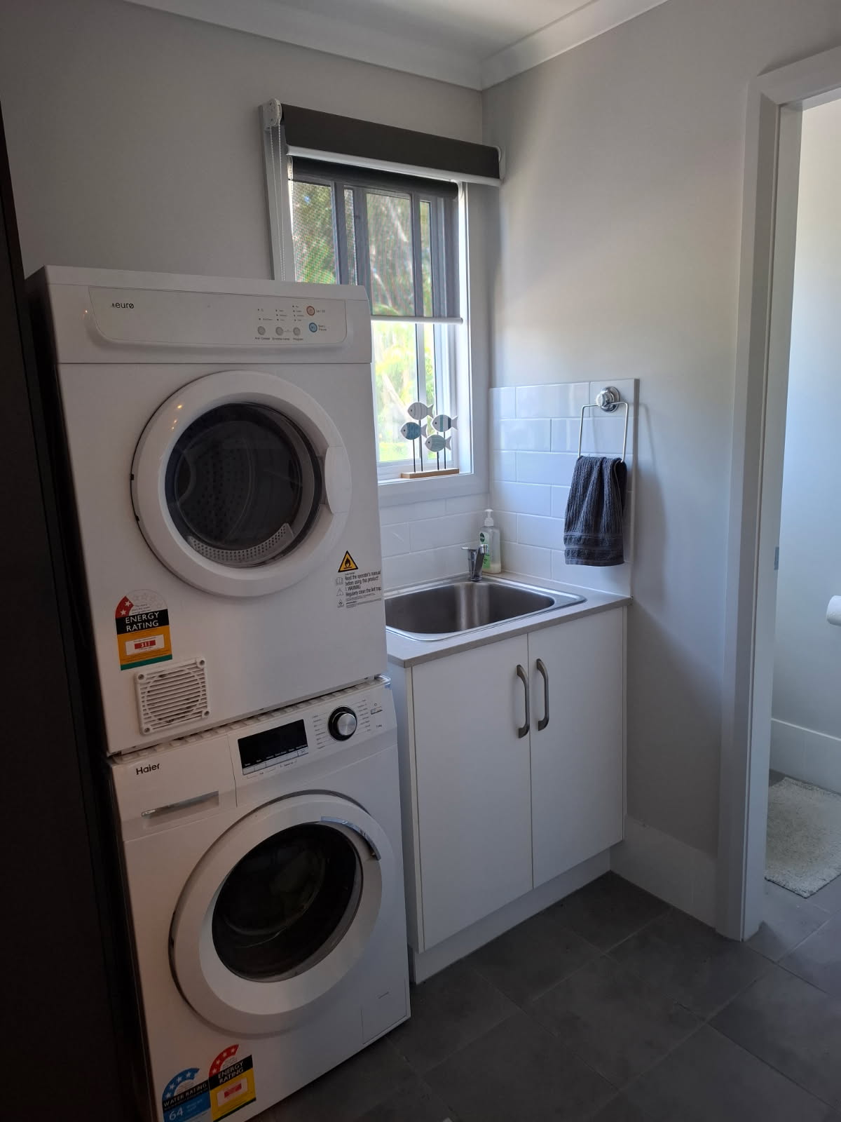 The heart of the home is the modern kitchen featuring sleek stone benchtops that not only elevate the aesthetic but also offer a durable and practical workspace for culinary enthusiasts. Sunlight double blinds adorn all windows, allowing natural light to flood in while maintaining privacy and enhancing the overall ambiance.