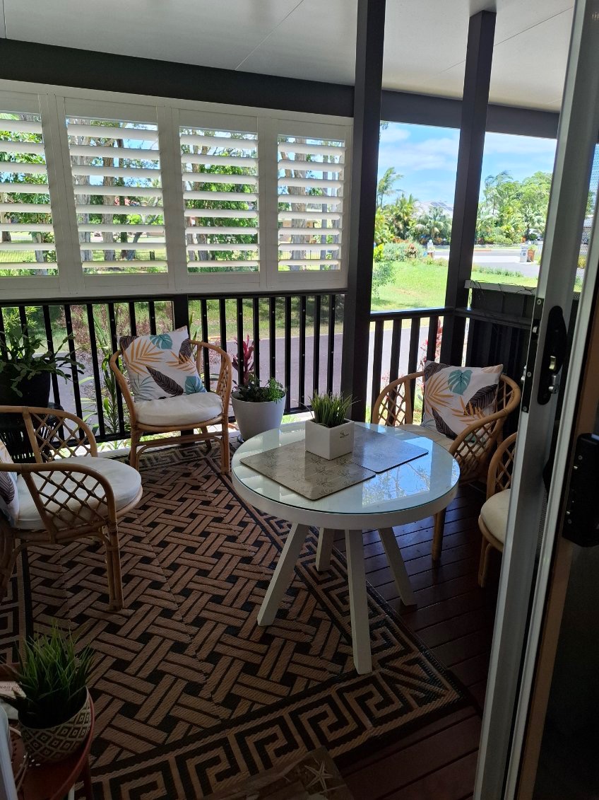 Embrace the outdoors on the front and side decks, ideal for morning coffees or evening BBQs with loved ones. The side deck is further enhanced by aluminum shutters that not only provide shade and privacy but also add a touch of elegance to the outdoor space.