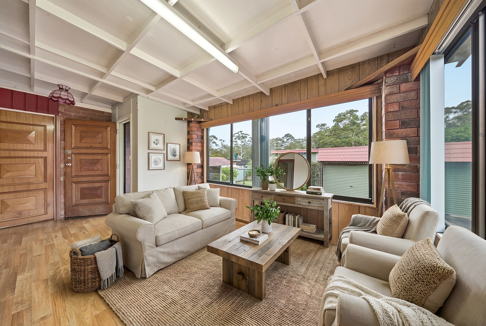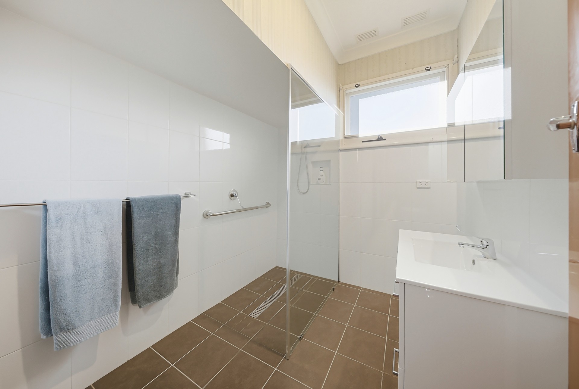 Thoughtful modern comforts-solar panels, year‑round air conditioning, polished timber floors, and a sleek open walk‑in shower-enhance the home's natural warmth and practicality.