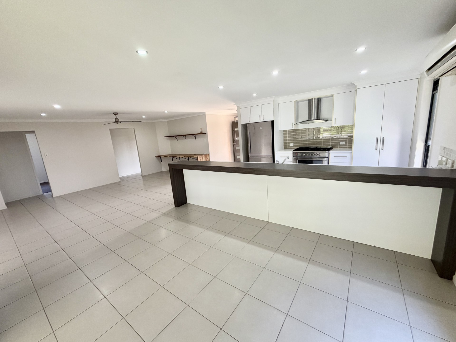 • Modern kitchen with quality appliances and ample bench space including a 90cm gas stove electric oven combo and dishwasher