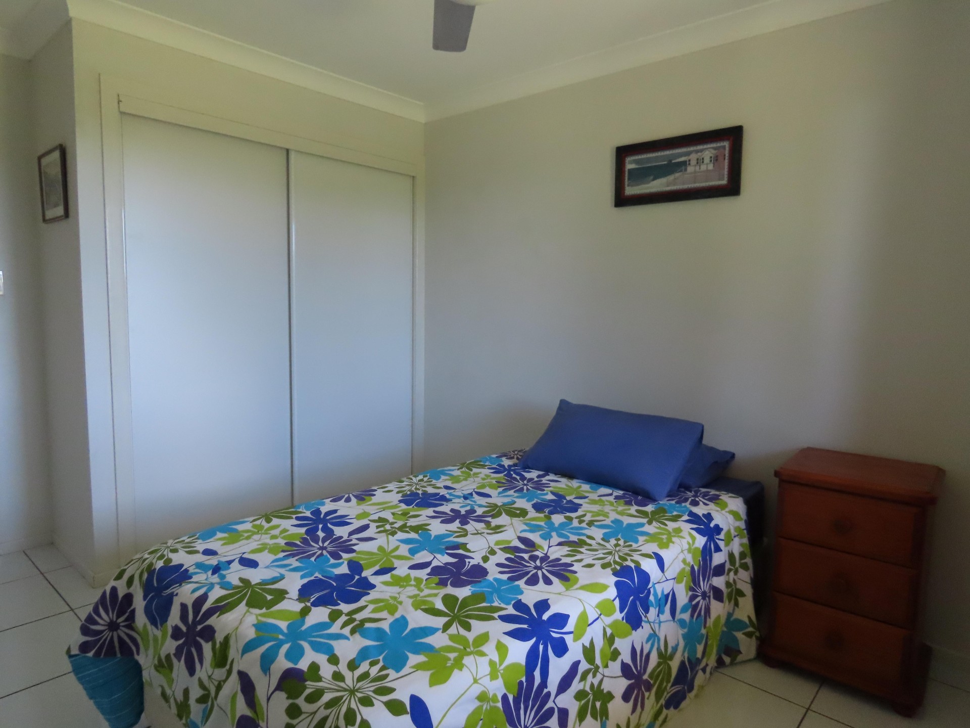 • Ceiling fans and tiled floors throughout