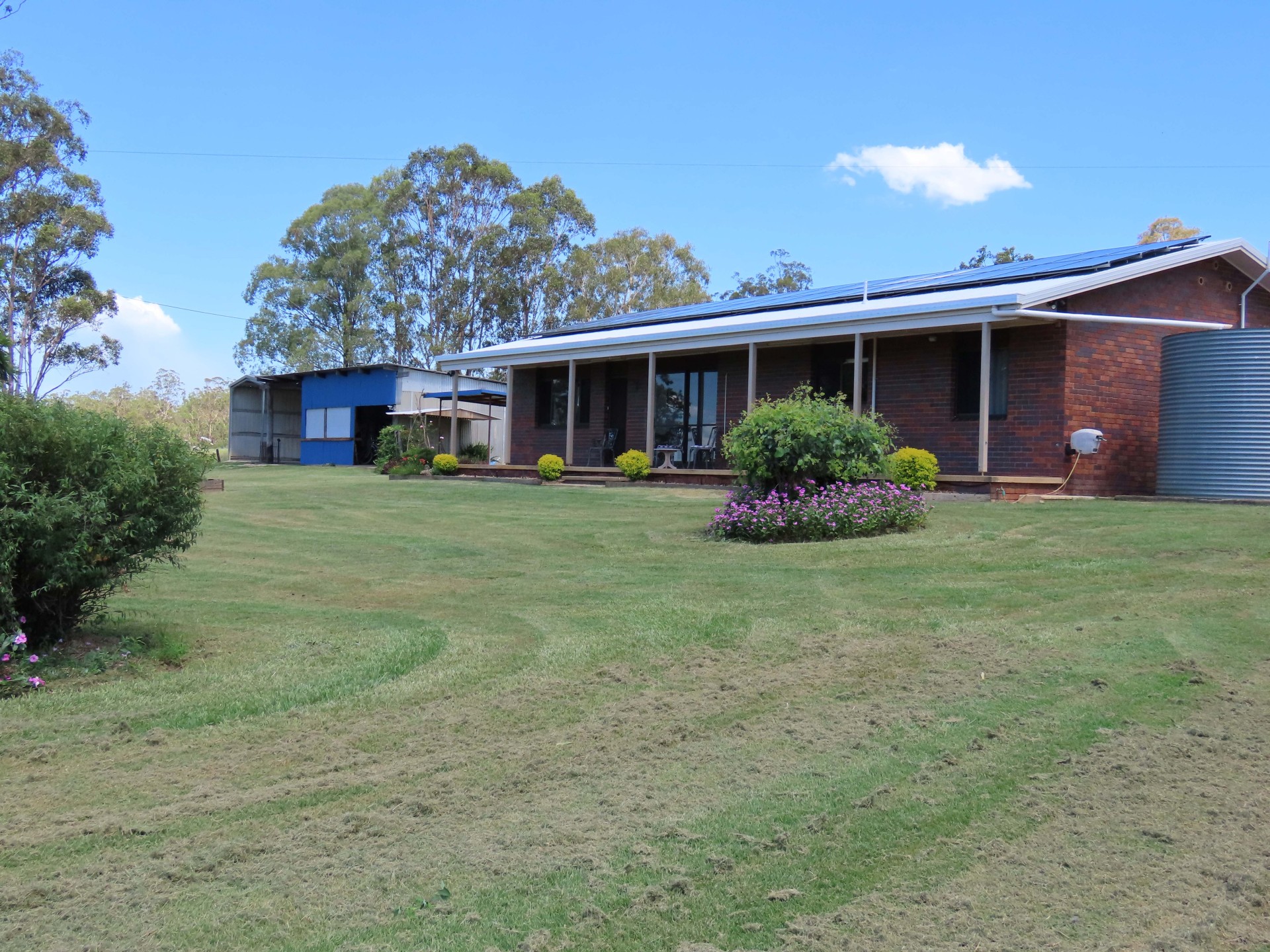On this picturesque 100 acre property, with views to the Booie range, only 13 minutes to Kingaroy, all the hard work has been done to make the bright 4 bedroom, elevated brick veneer house into a very comfortable home. Having installed 13.3 kw solar system with batteries and new bi-facial solar panels - we've not drawn from the grid, plus have earned feed in credits. The roof has been restored, new guttering, new septic trenches, new aircon in main bedroom etc.