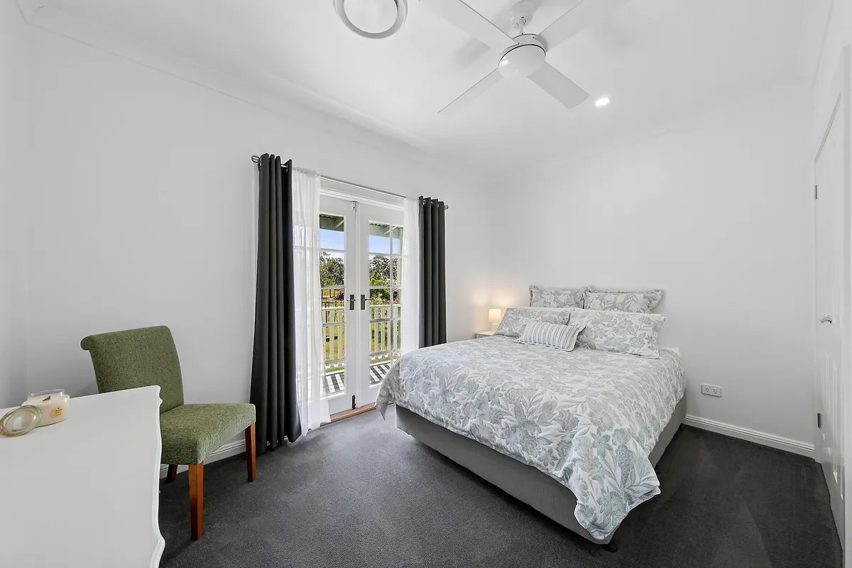 The layout is designed for indoor-outdoor harmony. French doors connect every bedroom and the main living space to the wide, wrap-around verandah, inviting the breeze and vineyard views inside.