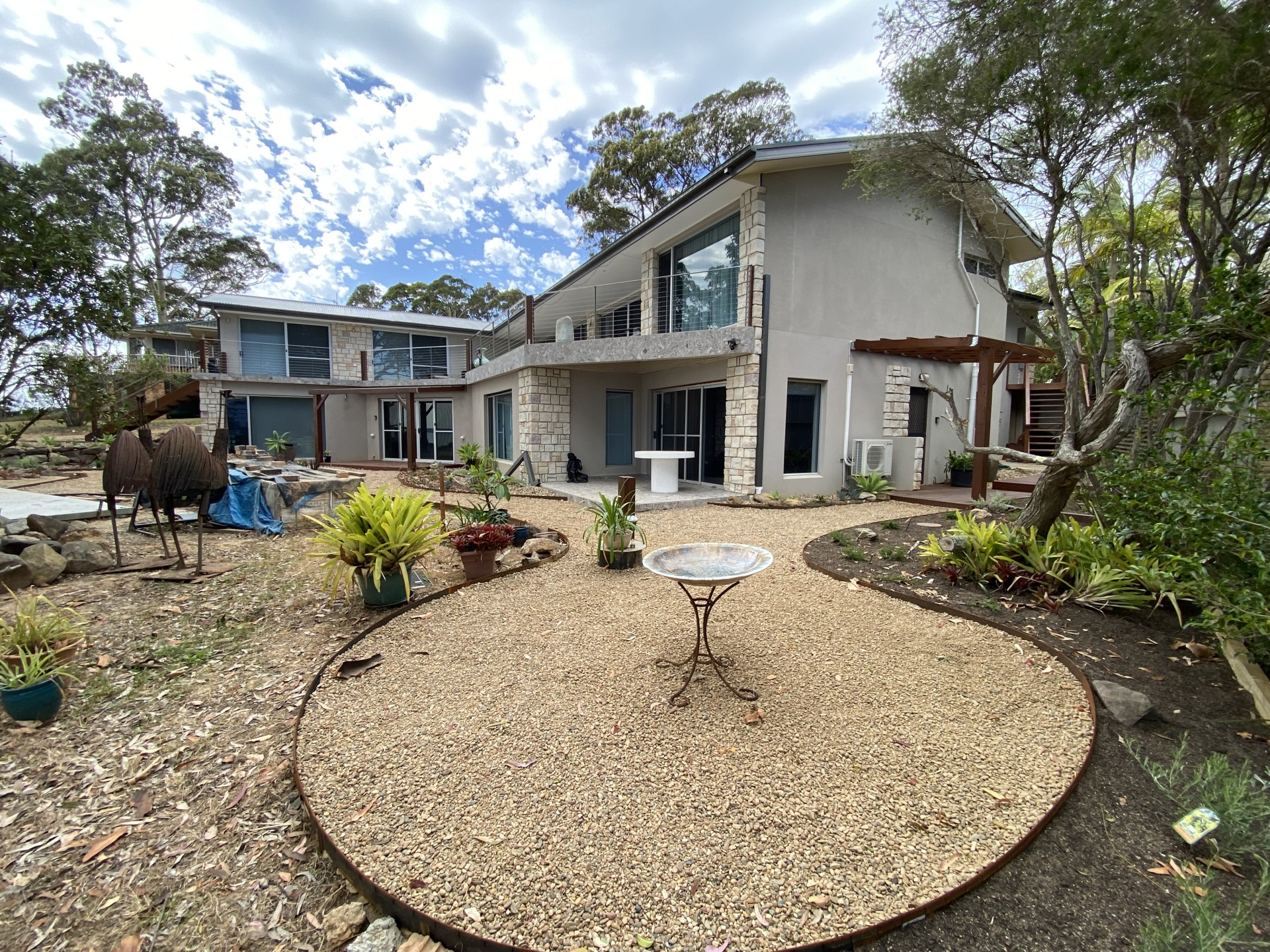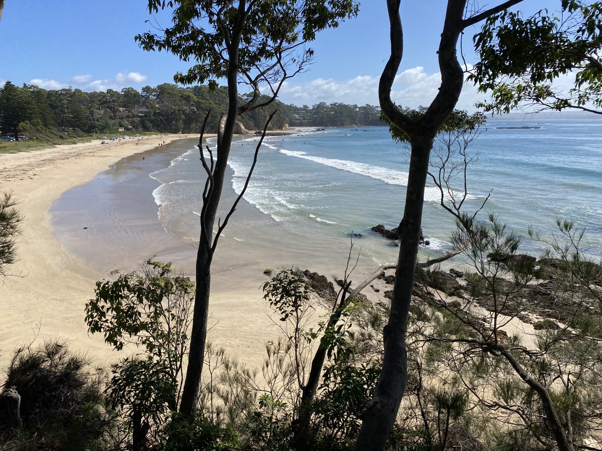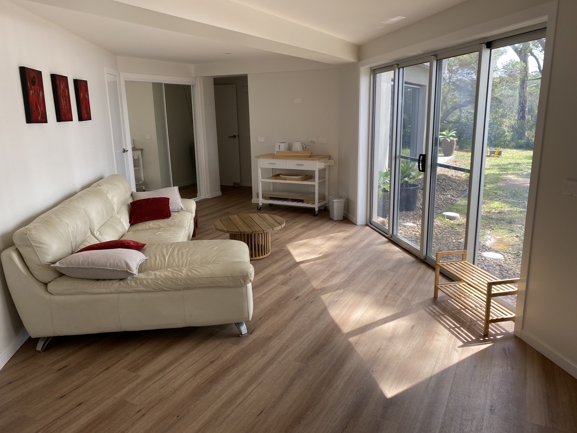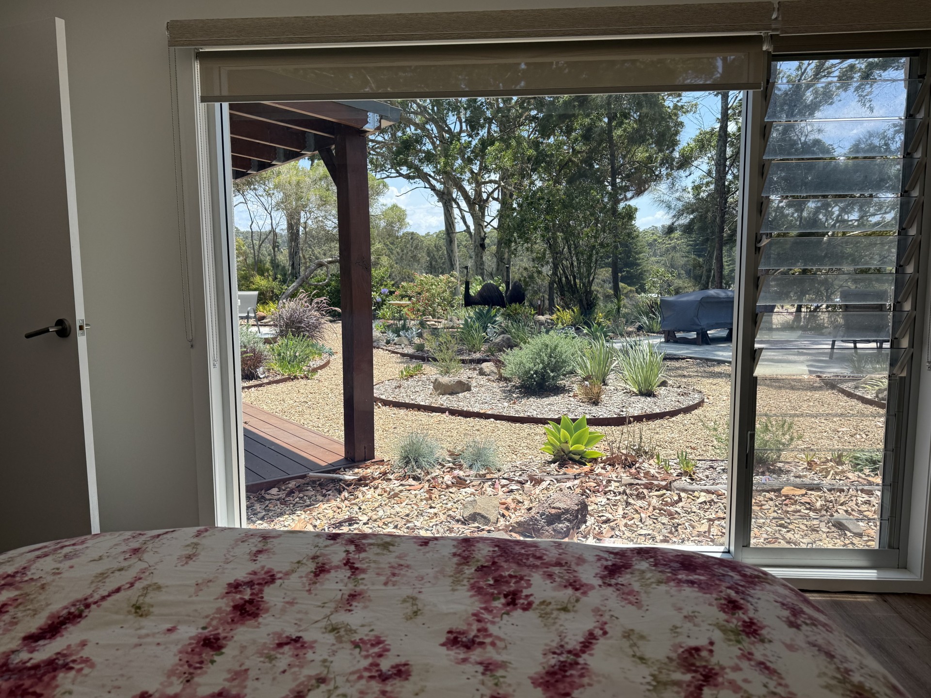Located on the cliff between Surf Beach and Wimbie Beach, enjoy the unique 50m direct beach access to Surf Beach, uninterrupted beach and ocean views, breaking surf, bird songs, magical sunrises, outside seating and relaxation areas, and evening-lit bushland garden.