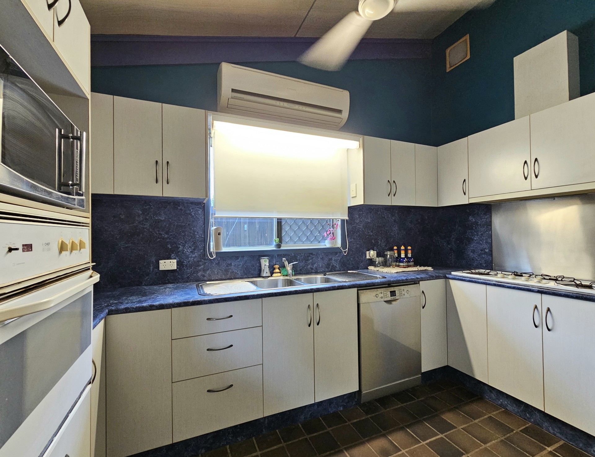 Tiled living areas keep the home cool, carpet in the 3/4 bedrooms and rumpus/bar room, with all rooms boasting double built in wardrobes with mirrored doors. Air-conditionig and fans throughout. The oversized bathroom has his and her sinks, separate shower, deep full size bath with separate toilet. Laundry is adjacent to bathroom and has an abundance of storage. The kitchen comprises, dishwasher, gas wall oven, gas cook-top, and breakfast bar with walk-in pantry. Entertaining is a breeze in the covered powered BBQ area with a cement table and a low maintenance, fully fenced yard.