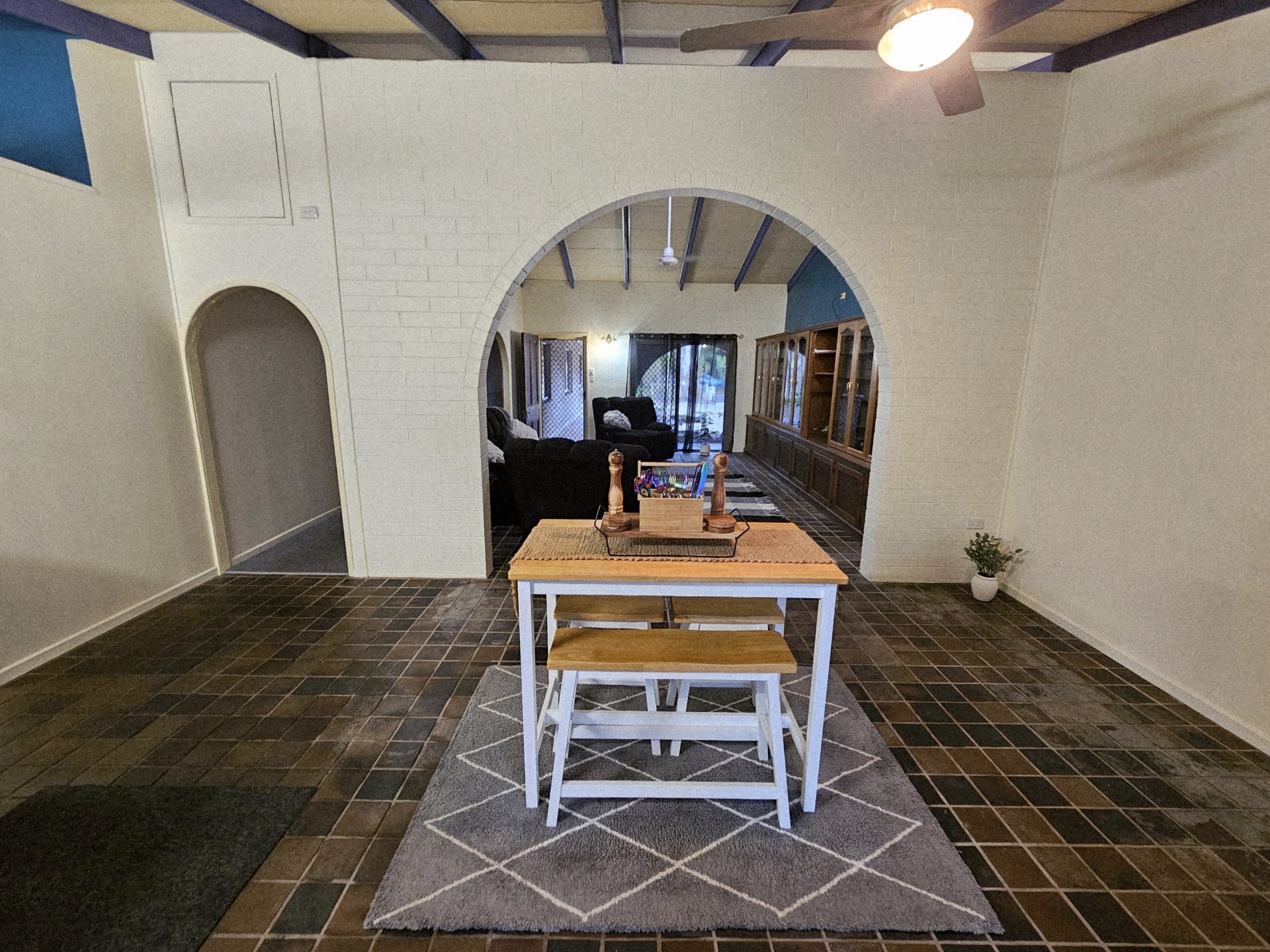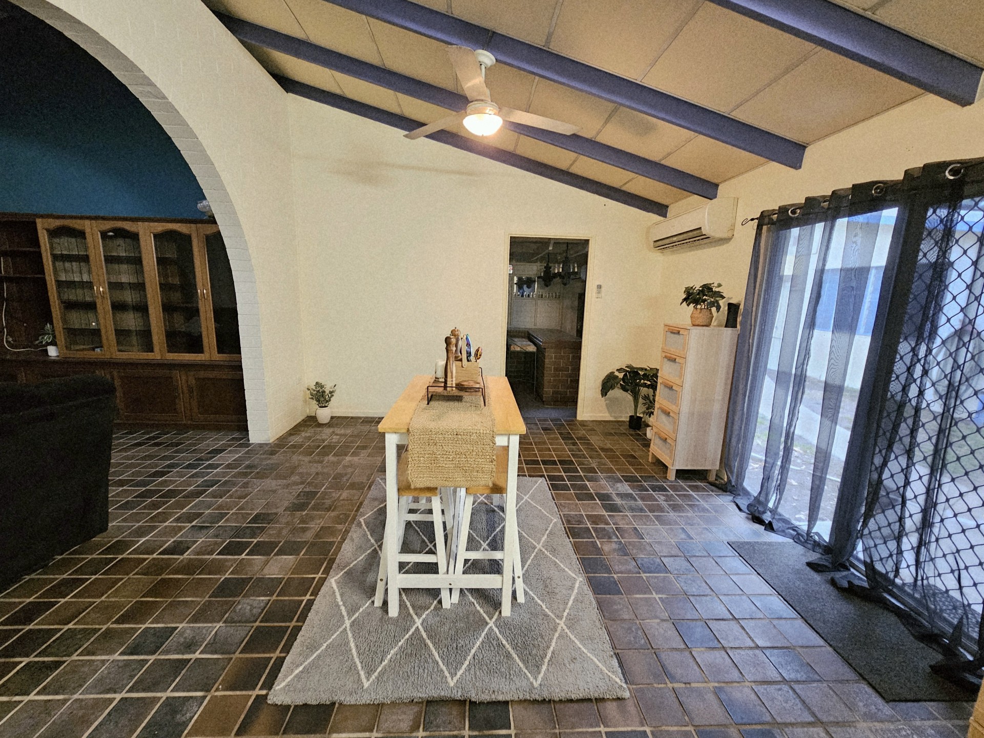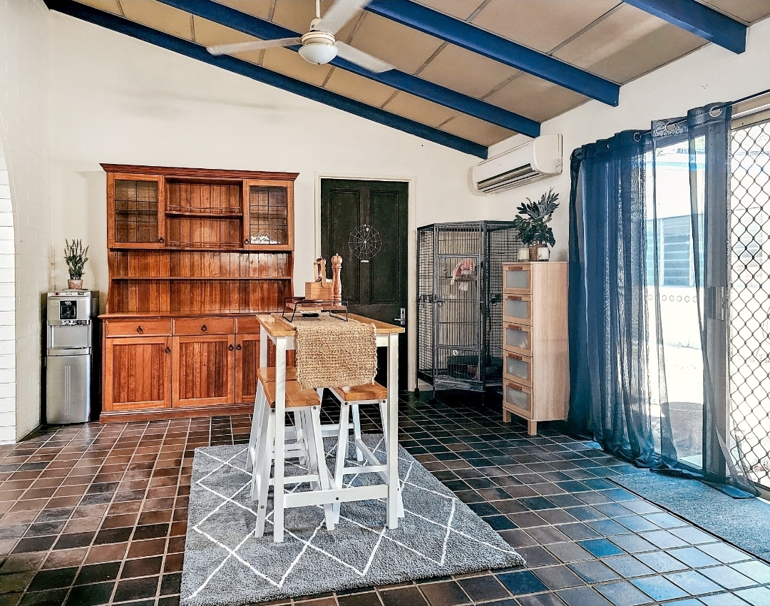 Consisting of two bedrooms, bathroom, kitchen with breakfast bar, lounge and designated dining area is ideal for multigenerational living - in-laws, adult children not ready to leave the nest, or extra income as a rental with its own independent access. Main area is air-conditioned, however, the system is big enough to cool even the bedrooms and fans throughout. Outside hosts it's own entertainment area and modest zero maintenance garden.