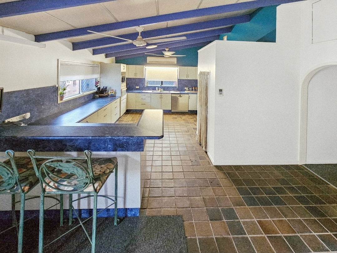 Location is fantastic; WEST MACKAY - quiet one way street, walk to shops, schools and medical centre, hospital only 1km away. This deceptively spacious U Shaped Spanish style lowset brick home consists of 371m2 under roof to the main house with seven external doors; tiled front patio runs three sides of the home with two adjoining carports to support 5+ vehicles with ample space undercover for a boat or caravan. Bonus Guest house / unit, approx 81m2 under roof and is separate from the main house. Solar power to both main and guest house, with an independent solar hot water system to the main.