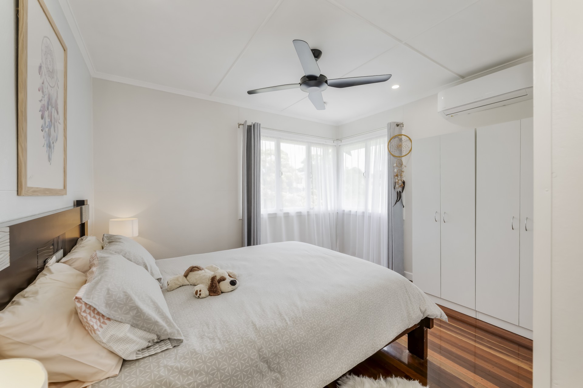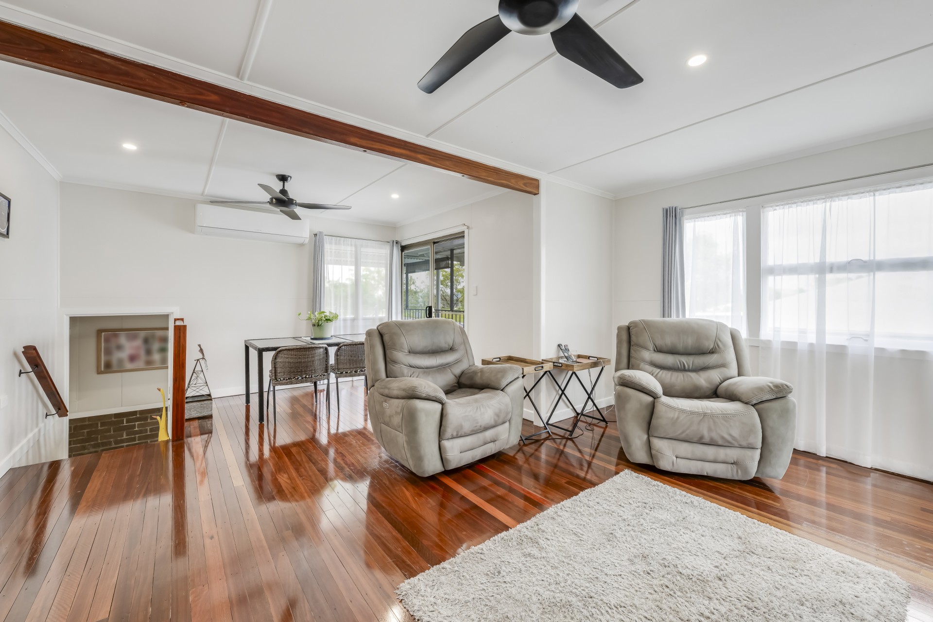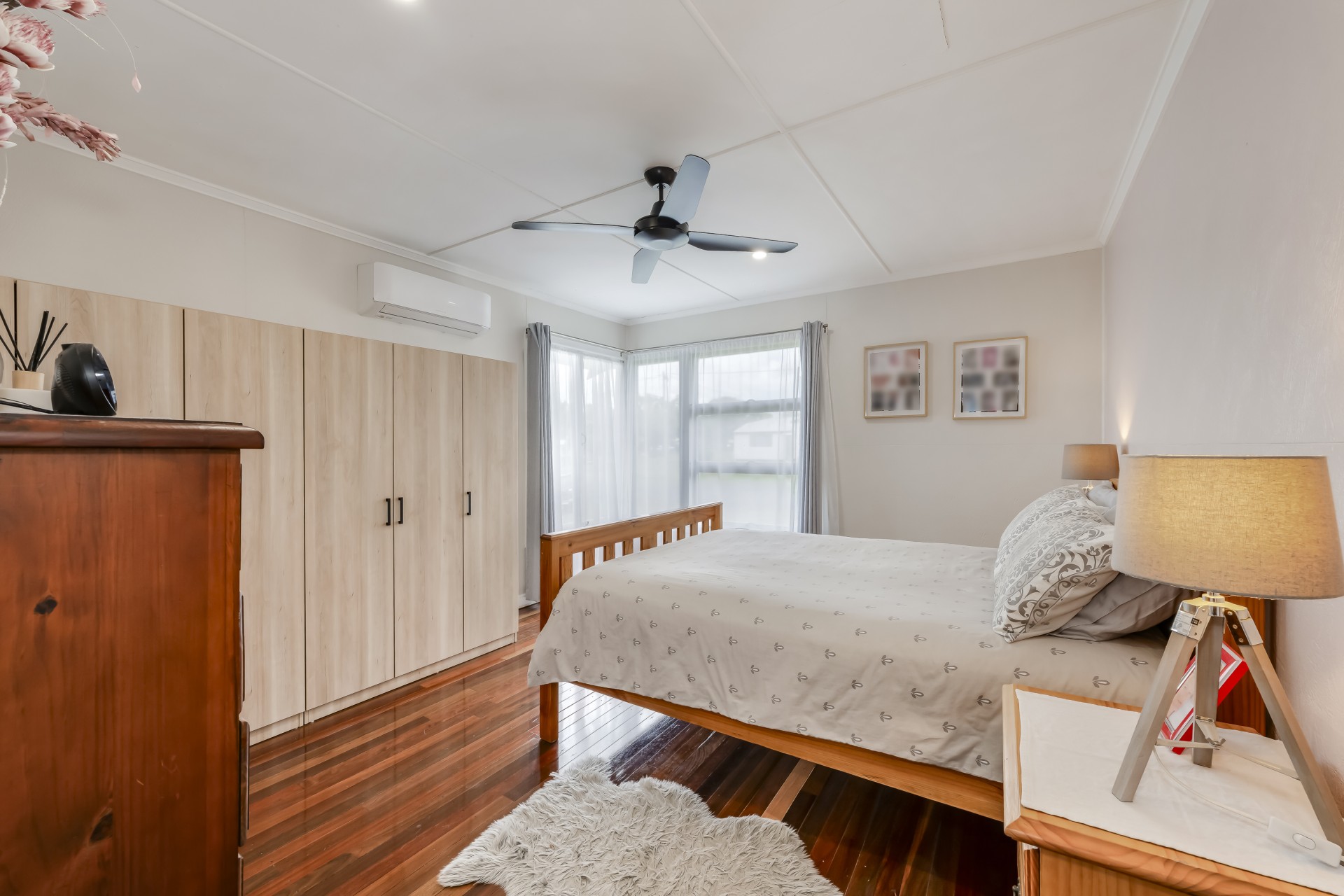 Upstairs, the air conditioning ensures year-round comfort, while the polished hardwood floorboards add a touch of elegance to the living spaces. With two bedrooms upstairs and an additional bedroom downstairs, there is ample space for the whole family. Need a quiet space to work or relax? The office or sleepout provides the perfect sanctuary.