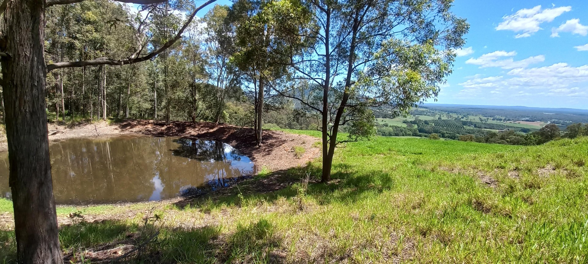 There is a 10 ML water license to pump from Ross creek to a turkey nest via a 3 phase electric pump. The water gravity feeds down the length of the property with several stand pipes fitted with valves. There are 2 large flat areas at the top of the hill that lead directly into the Goomboorian National park. There is 5 acres over the hill of remnant forest with rainforest patches. Currently a Land for Wildlife property.