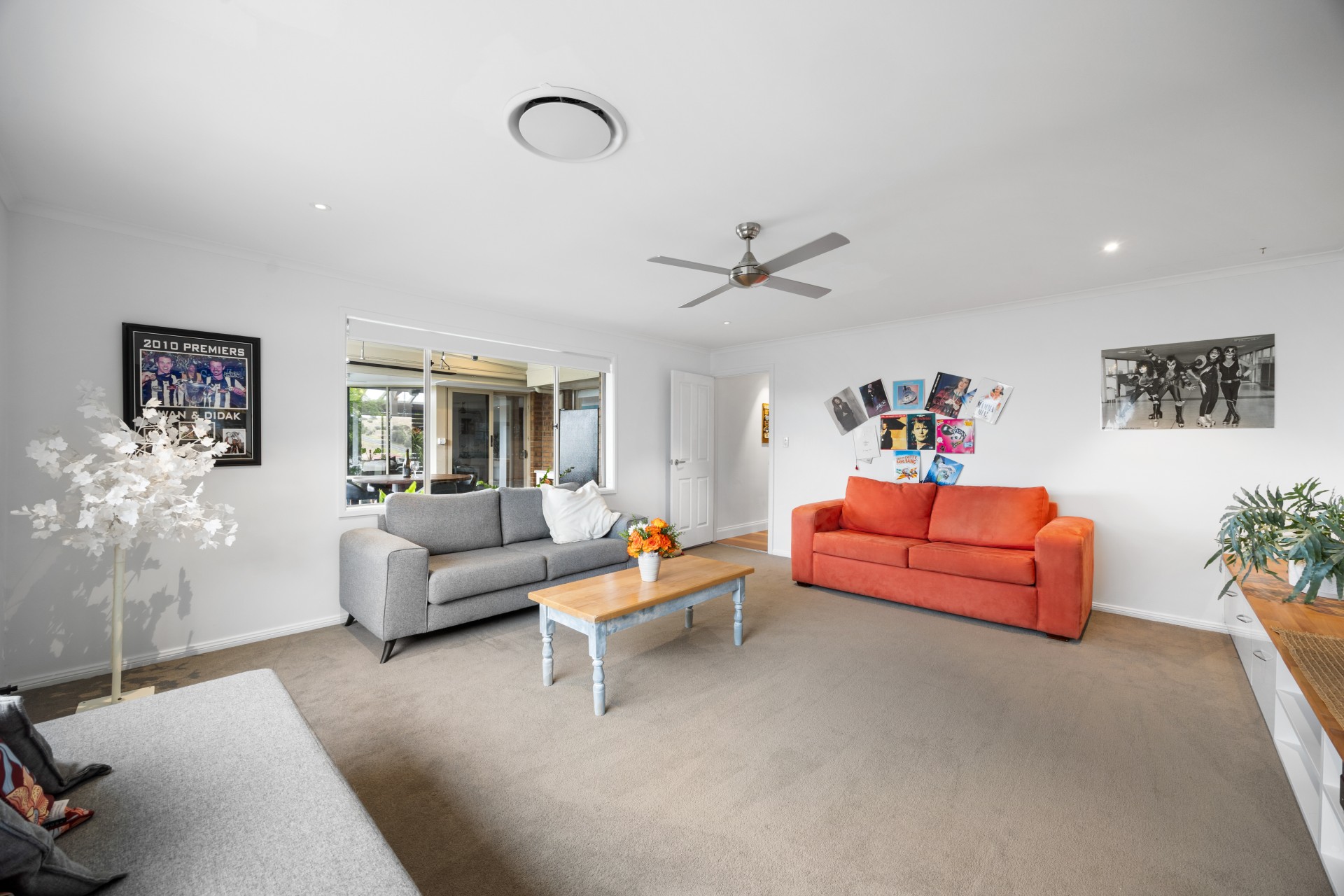 A spacious family/rumpus room with built-in storage provides flexibility as a fifth bedroom or teenager's retreat. Year-round comfort is assured with zoned ducted heating and cooling, supported by a 5kW solar power system for energy efficiency.