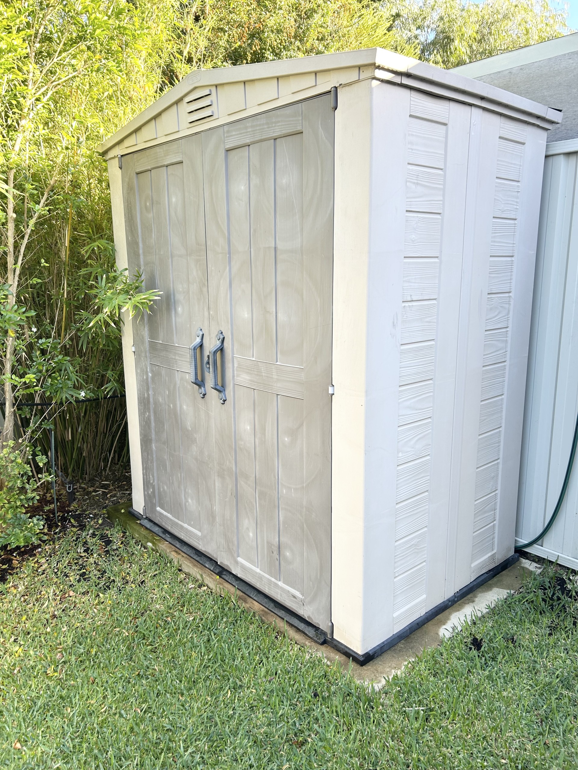 This two-bedroom, two-bathroom house features an open-concept layout and is secured with a manual sliding gate.