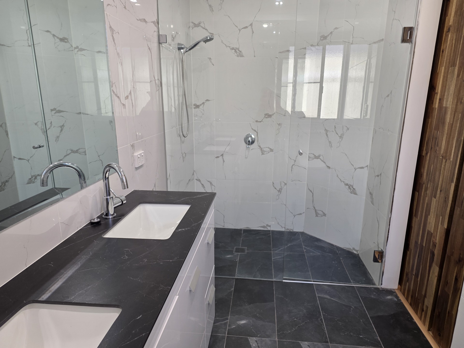 Generously sized master suite to the front of the home with large windows and fully modernised, suite-tiled to the ceiling, and a walk-in robe.