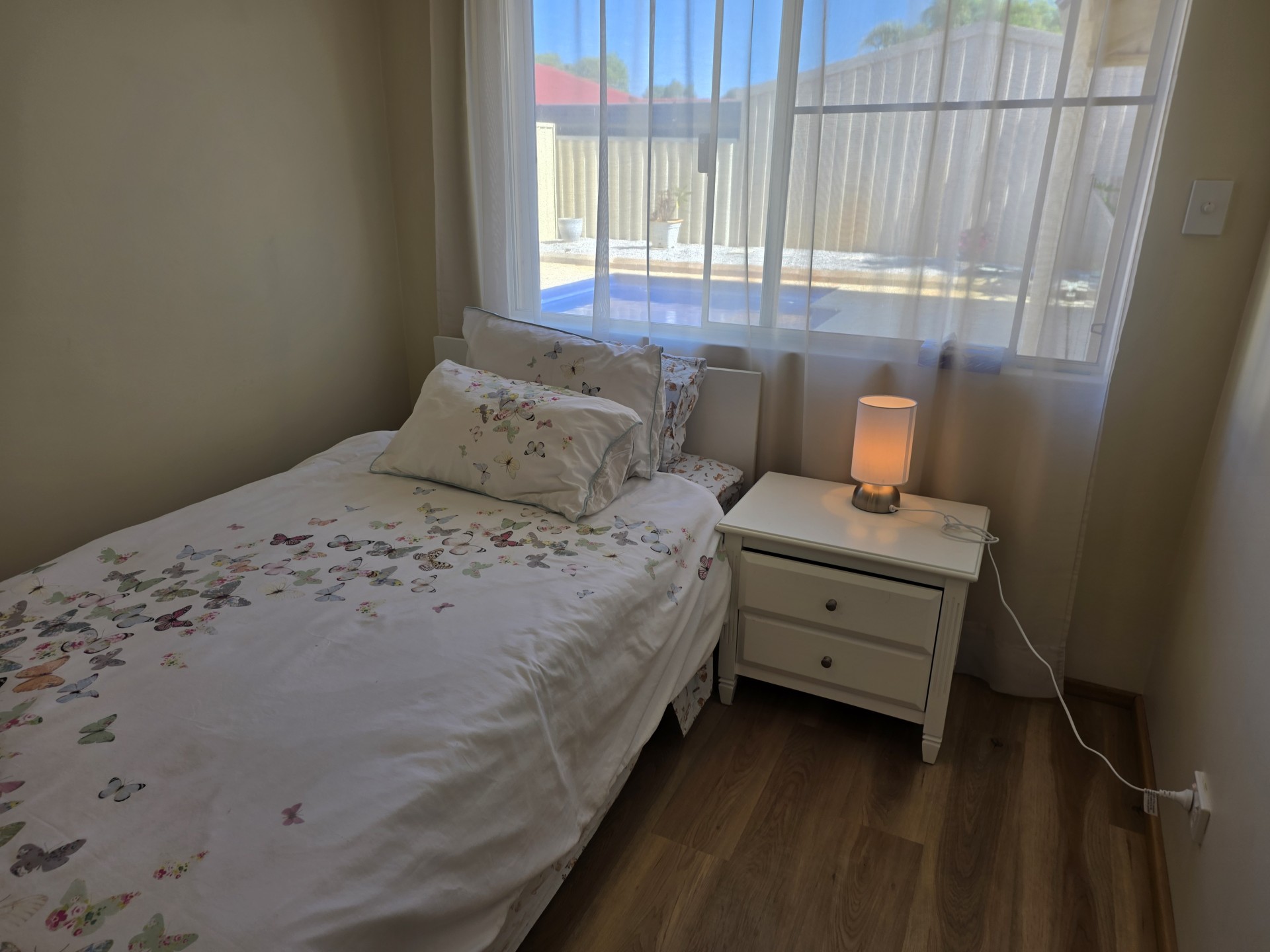 The three bedrooms, set in their own wings, have two rooms with laminated flooring for easy care and one with carpet; each has a ceiling fan, and all have built-in robes.
