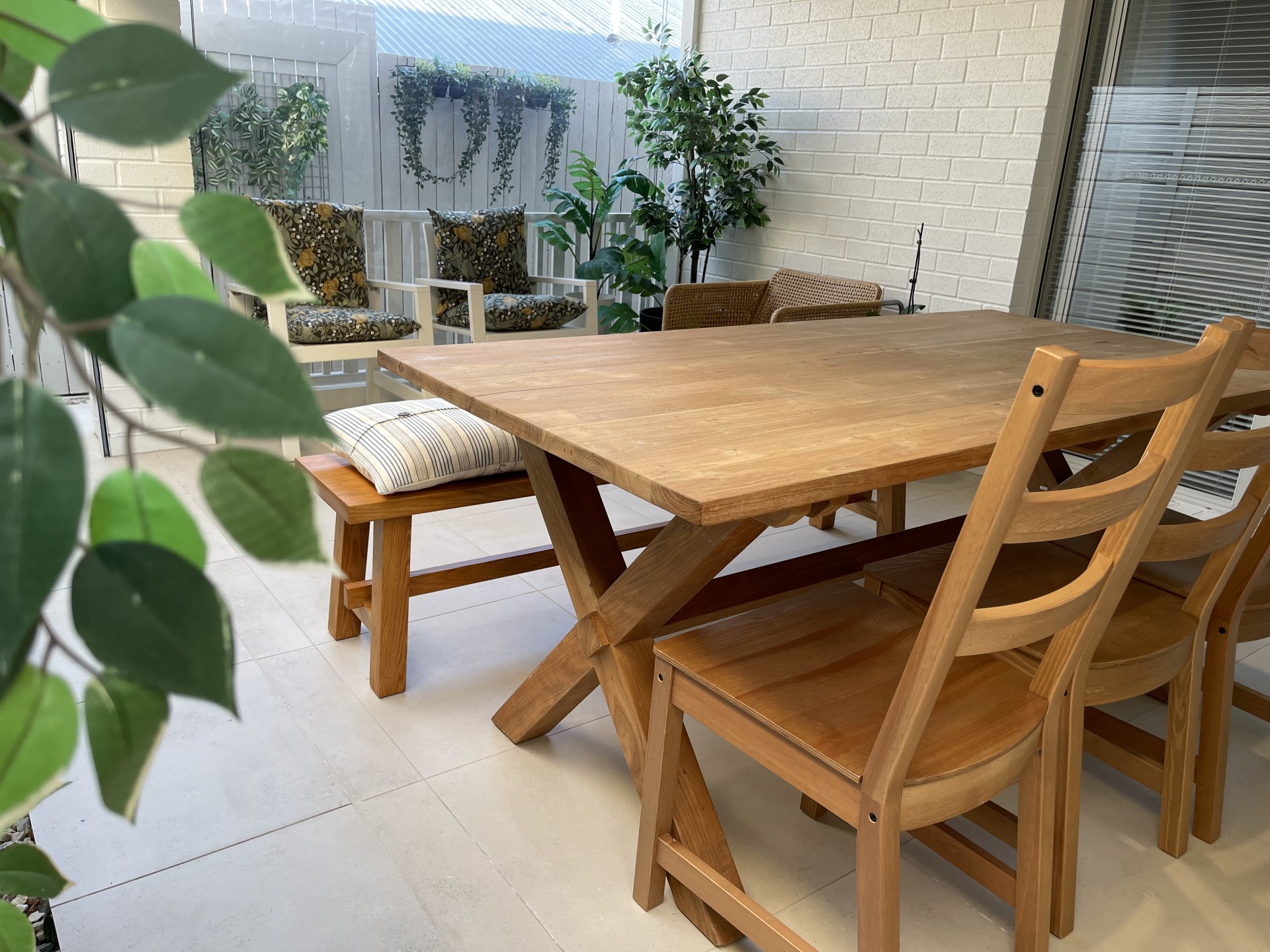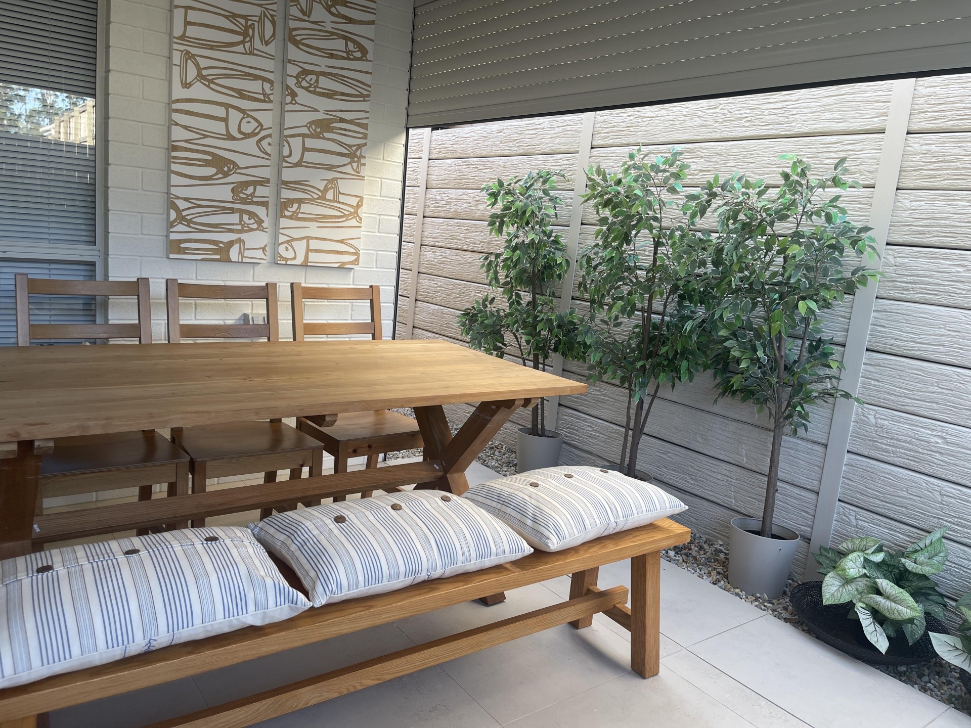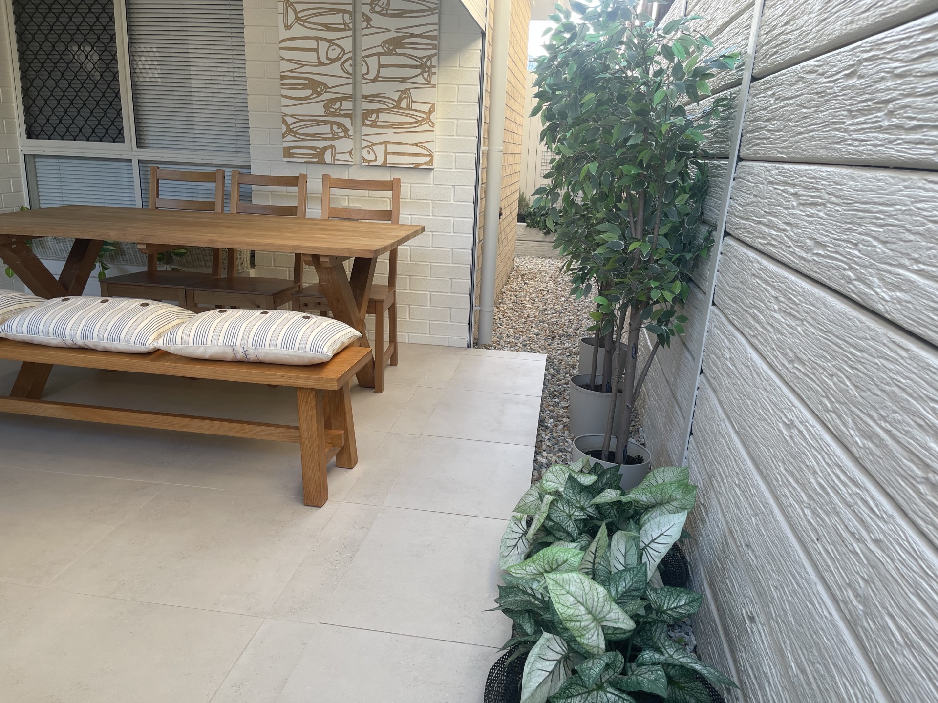 The Patio is tiled and boasts a cafe blind and high quality roller shutter so that it can be enclosed in wet or hot weather. The enclosure also has ducted aircon, a fan, lights and an external power point which means you can use the space as a little cafe, playroom, seperate entertainment area, or convenient barbecue space.