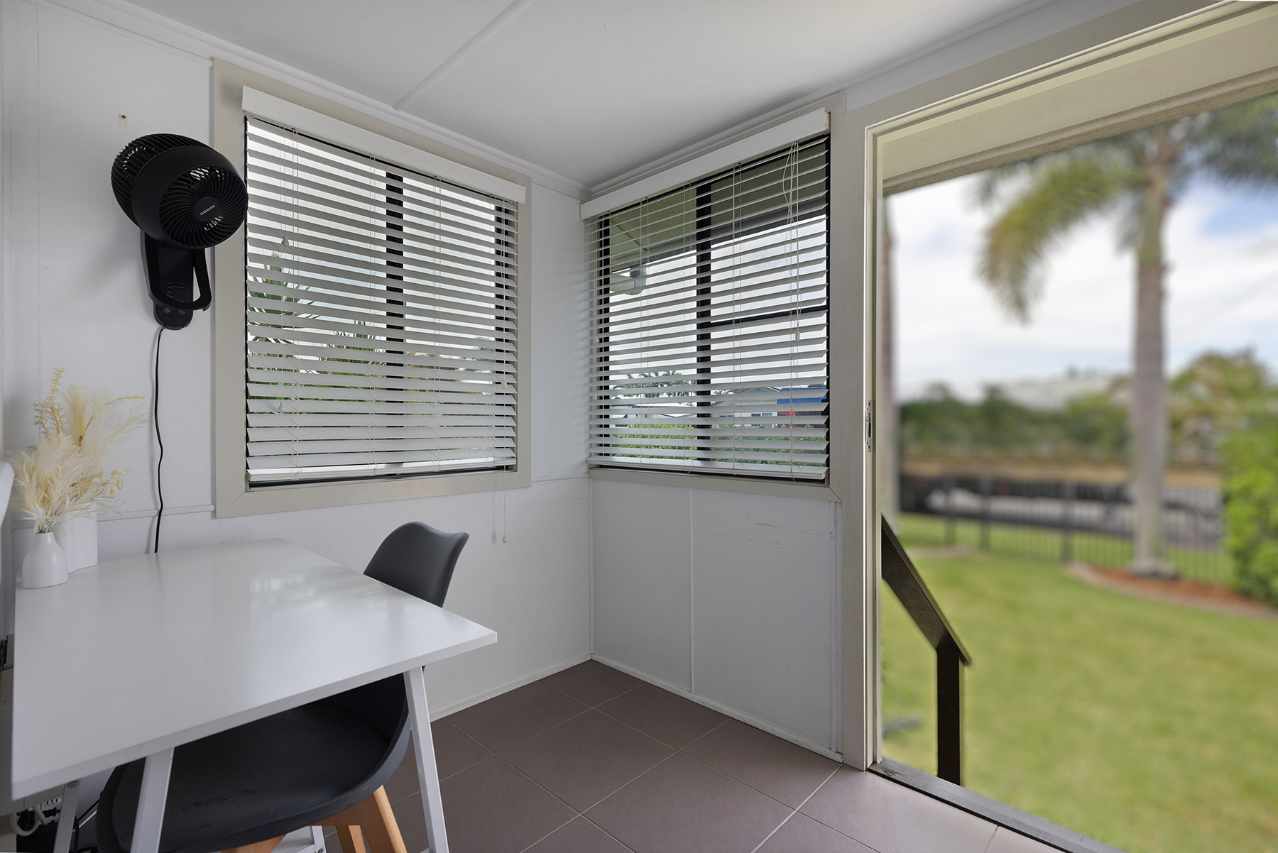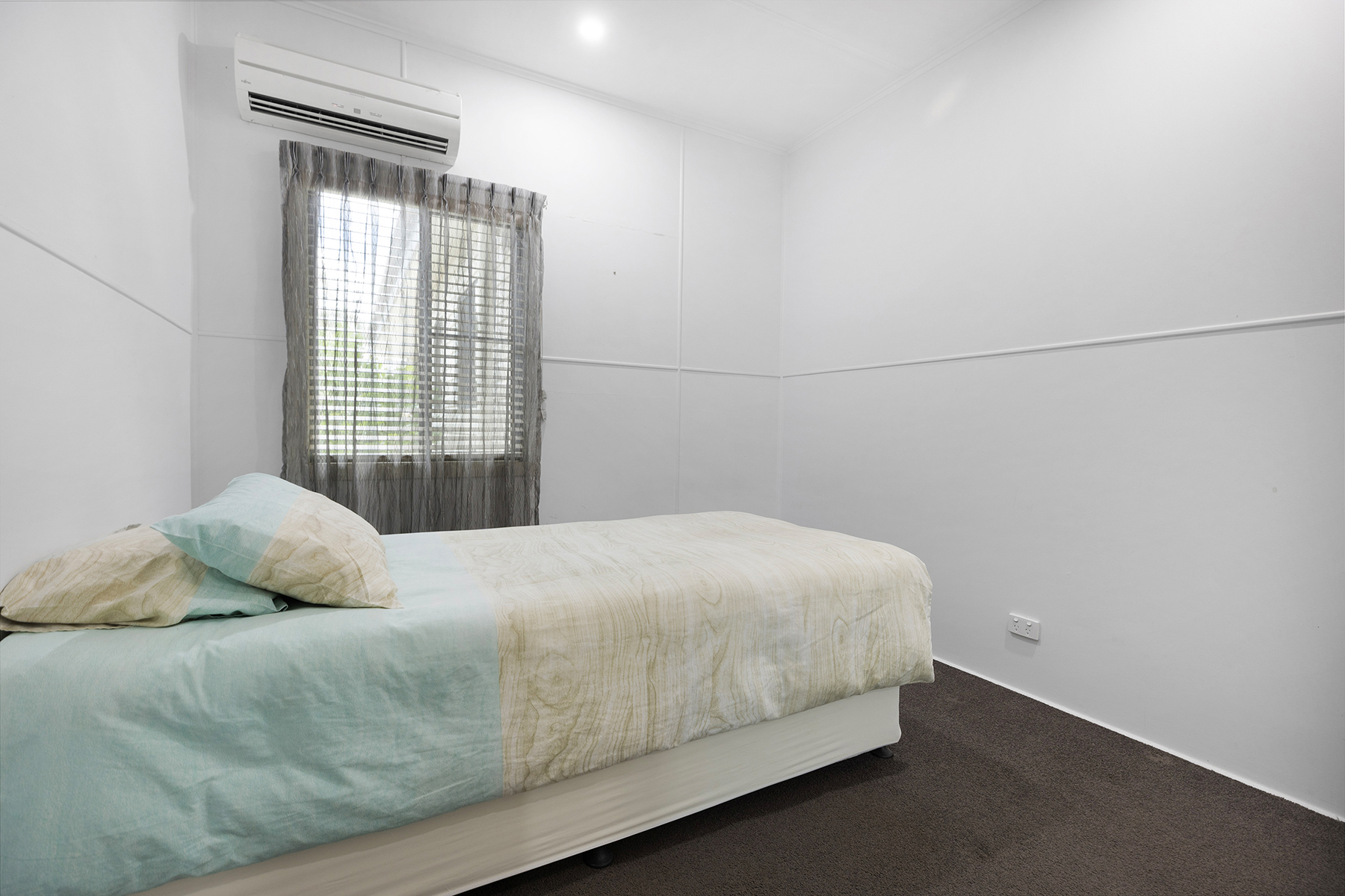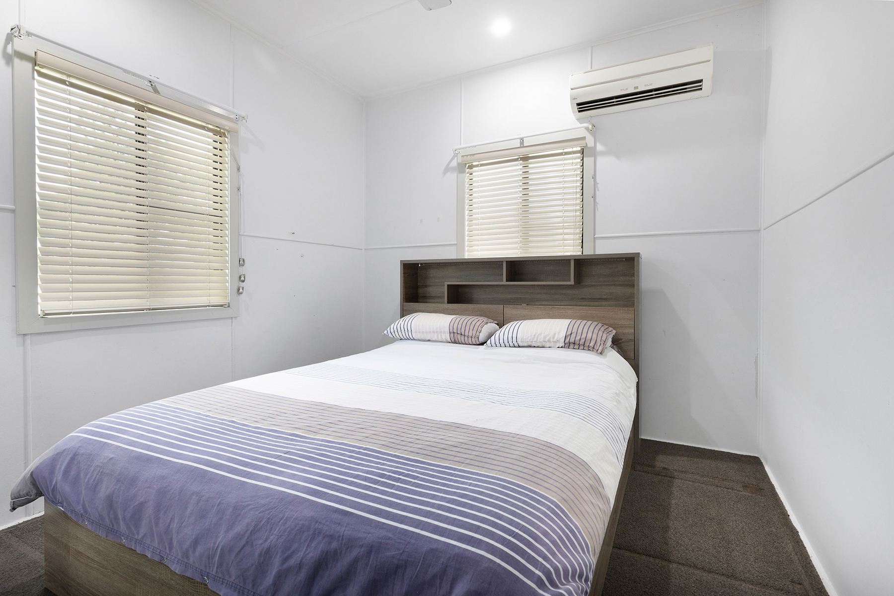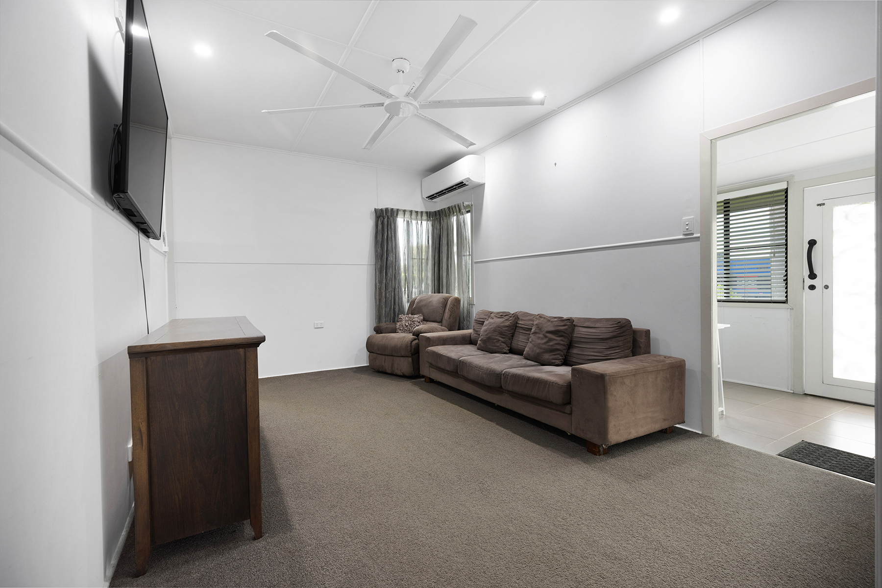 The spacious lounge room boasts an extra-large ceiling fan for generous airflow & can accommodate a mixture of seating configurations. The split-system, reverse cycle air-conditioner in the lounge room will quickly cool or heat the living areas of the home.