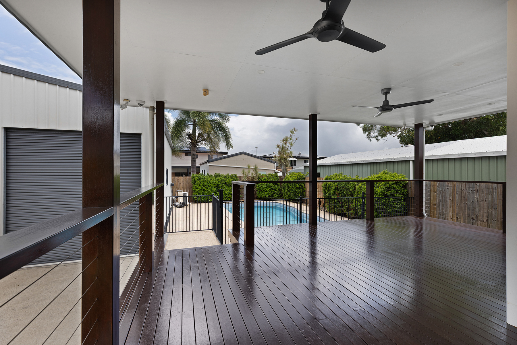 The deck has corrosion-proof ceiling fans, various down-lights & would accommodate a range of furniture configurations.