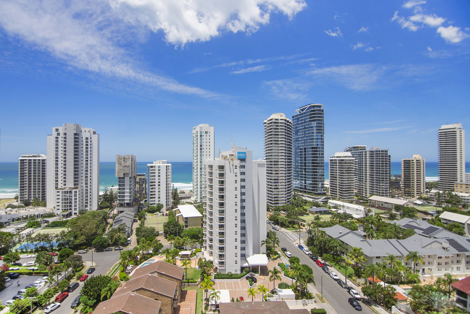 Beautiful Tedder Avenue, the retail precinct of Main Beach and a mecca of restaurants, is a three minute walk West. Walk a further five minutes to the Nerang River. A five minute walk East and you on the edge of the Pacific Ocean on one of the iconic patrolled beaches the Gold Coast is famous for. Just a five minute drive North West to Southport is a major business and retail mecca of the Gold Coast. In less than ten minutes you can drive to the Northern end of the Spit. There you can see boating craft of all sizes as they traverse from the sheltered waters of the Nerang River to and from the ocean. While there slip in to the Seaway Kiosk, have a picnic, walk to the end of the Seaway or watch water activities or migrating whales.