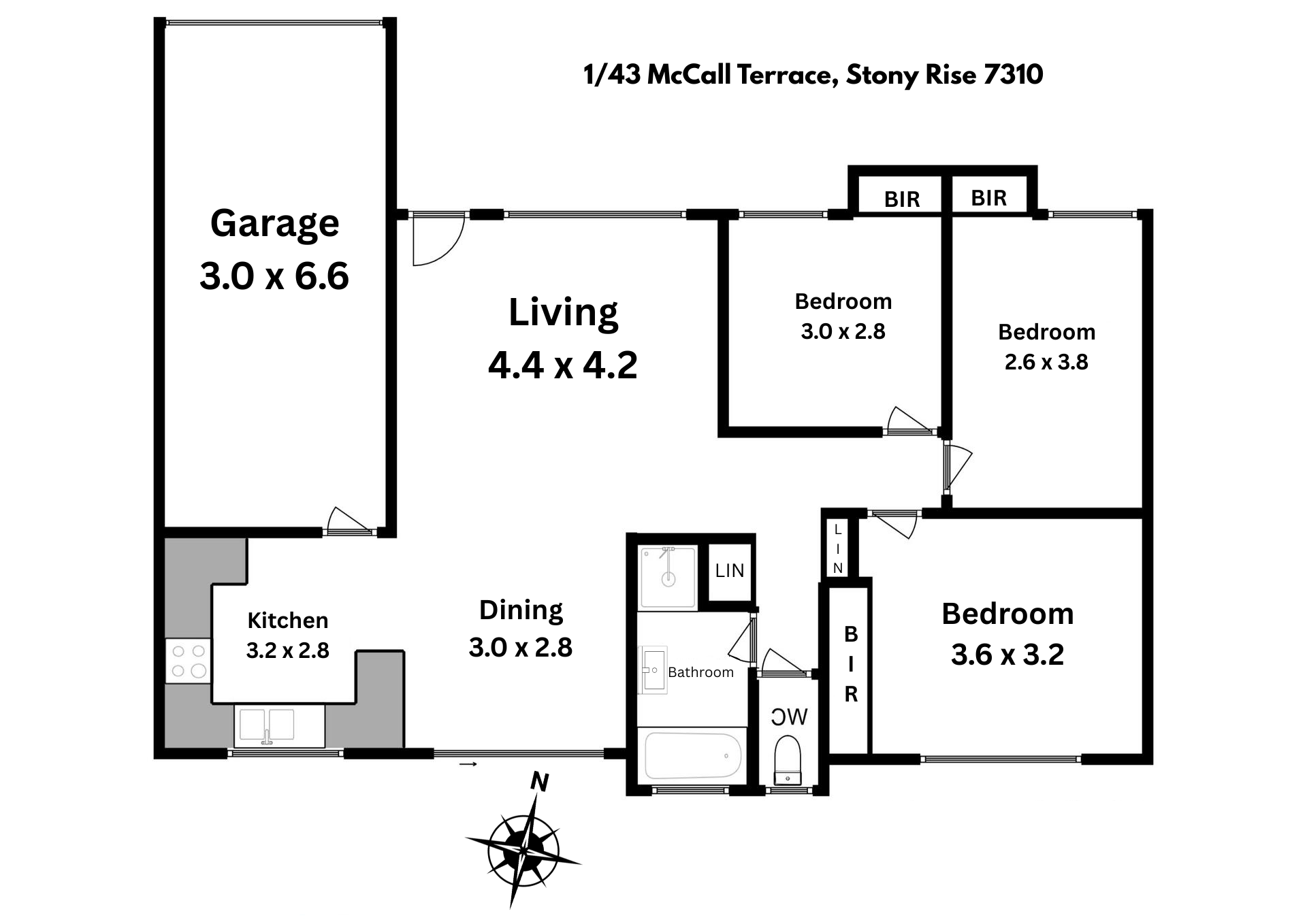 • Three bedrooms, all with built-in wardrobes