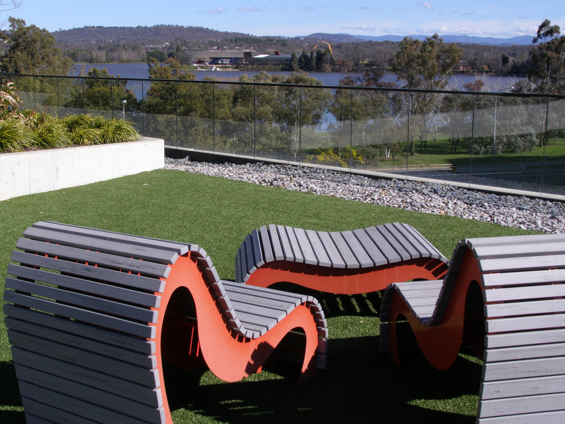 * 4th level roof-top garden with BBQ & seating overlooking Lake Burley Griffin & Brindabella mountains