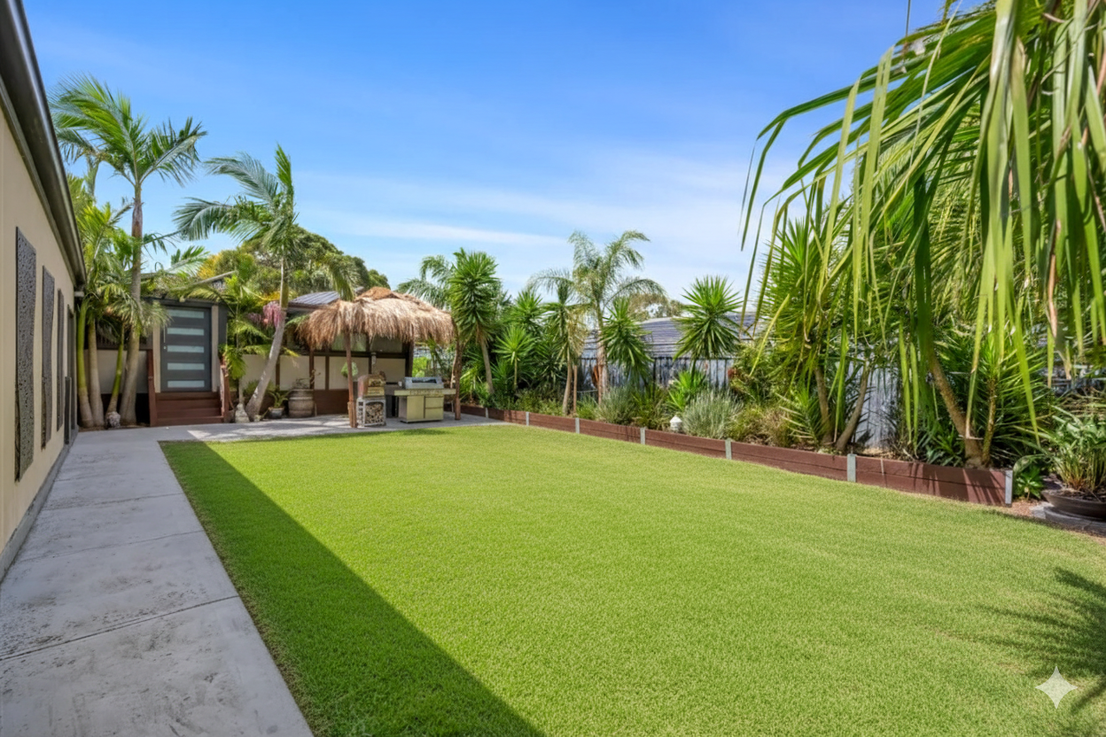 The heart of the home flows seamless to an outdoor oasis, with bali inspired gardens create a private retreat. A bali hut offers the perfect setting for entertaining, relaxing or hosting in a tranquil environment.