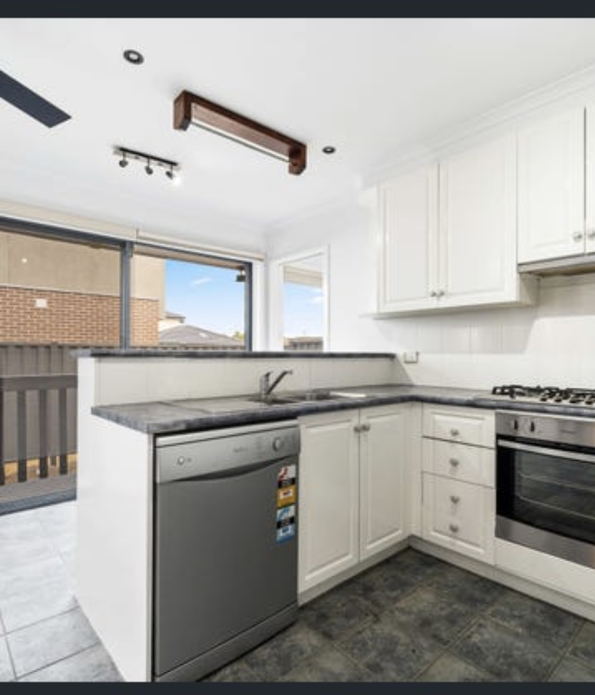 A modern kitchen with Stainless Steel Appliances, dishwasher and feature bench tops.