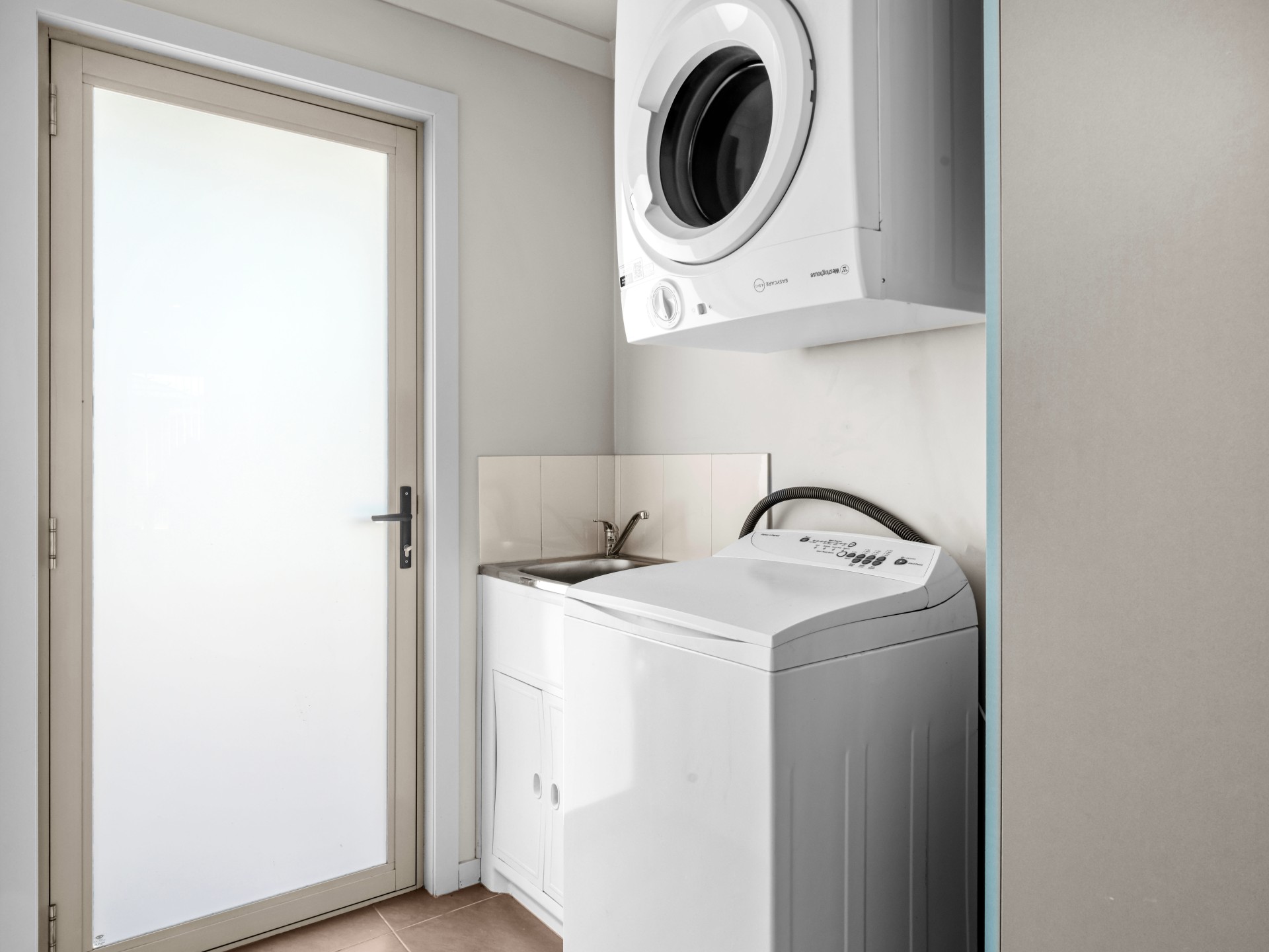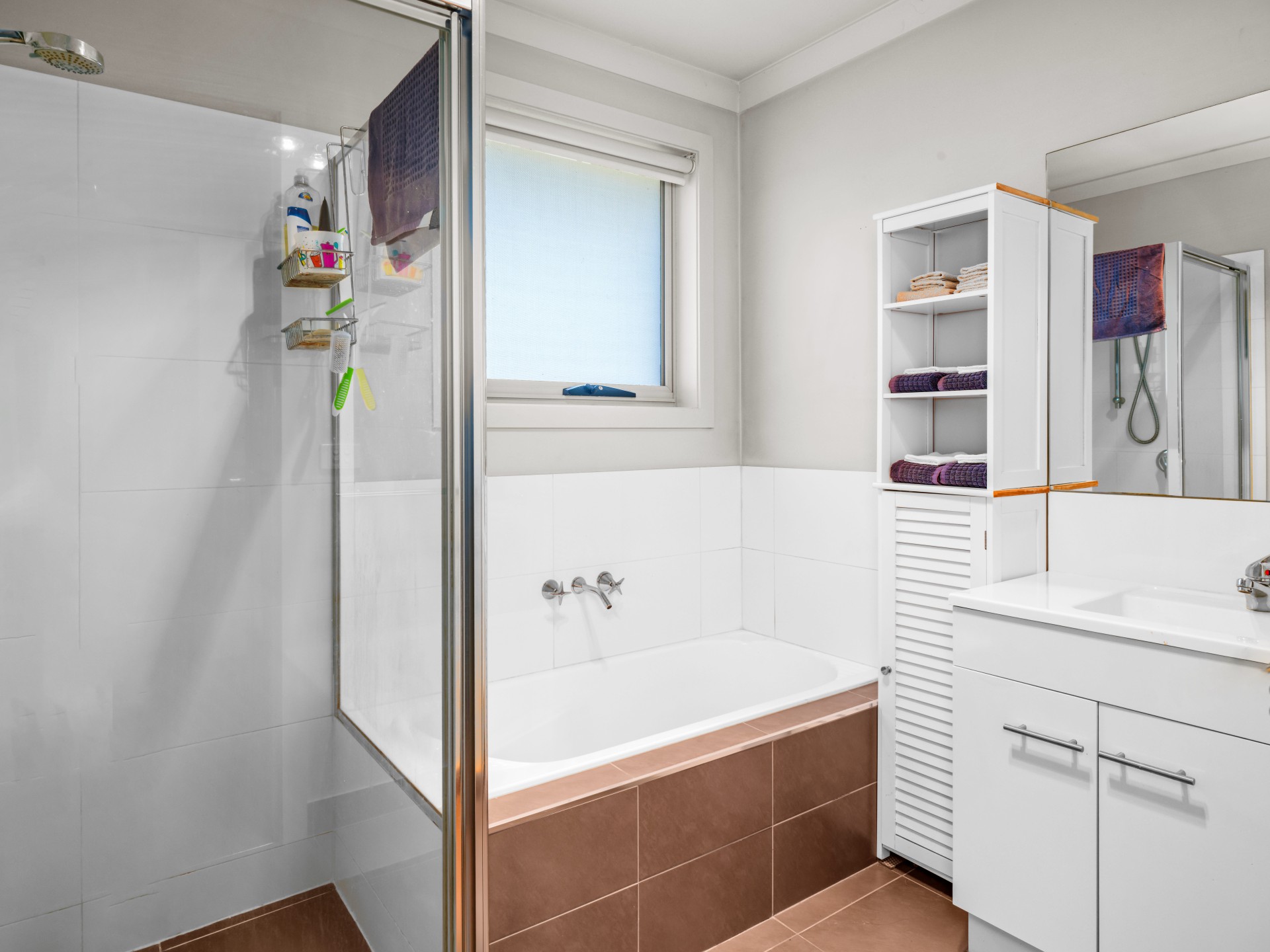 There is a full bathroom with a separate toilet, and the laundry with linen storage is conveniently located nearby.
