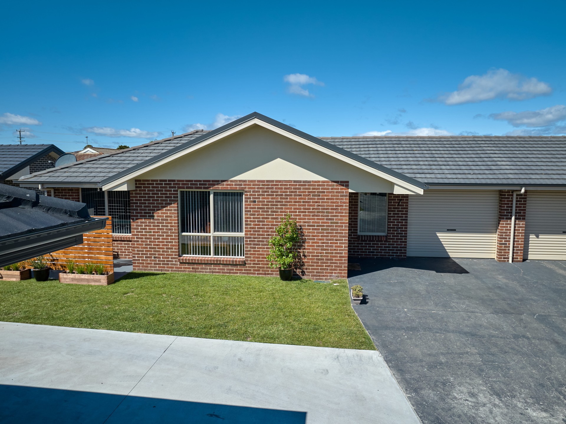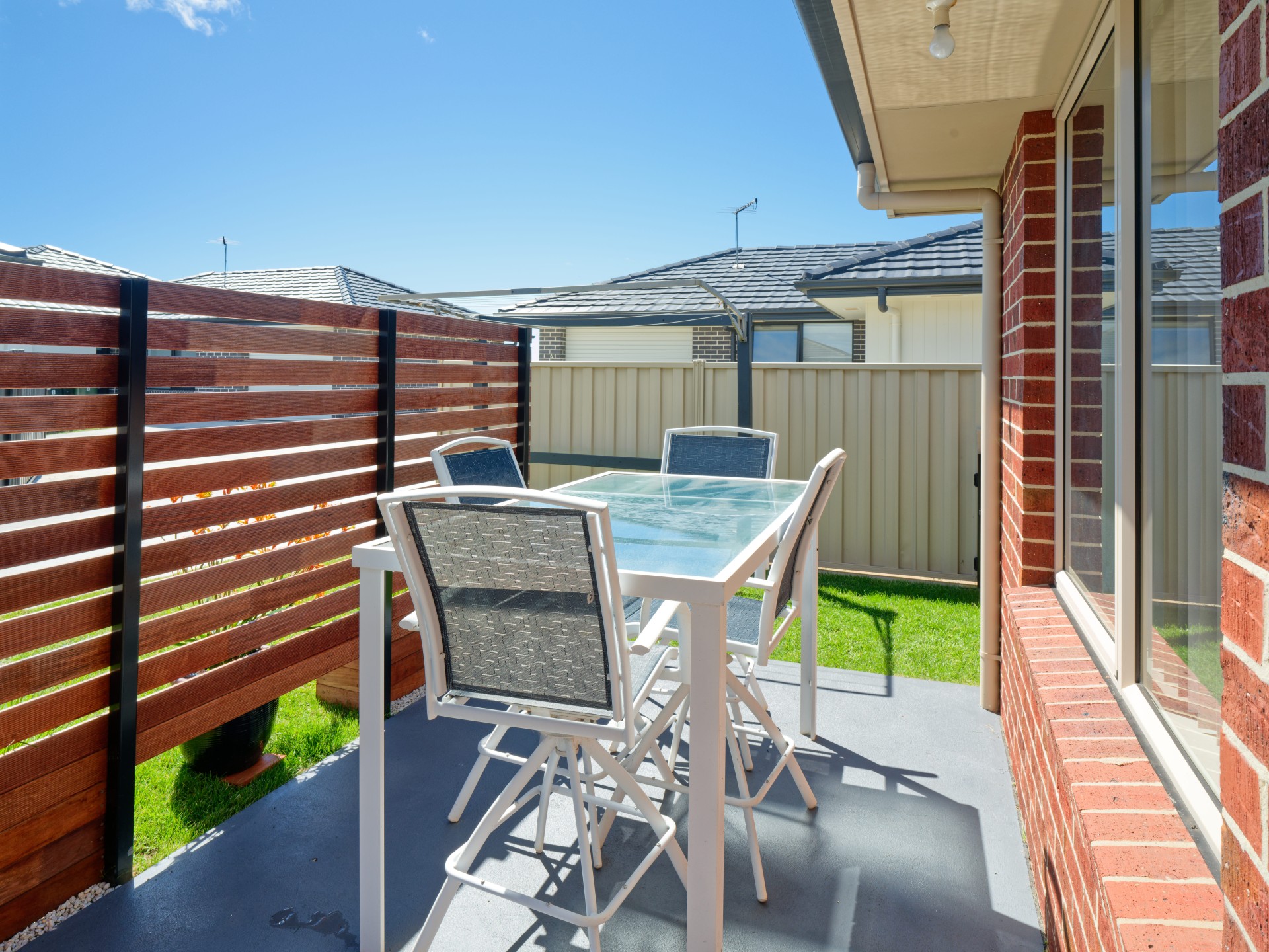New landscaping has been added to the front, with a privacy screen to the patio area.