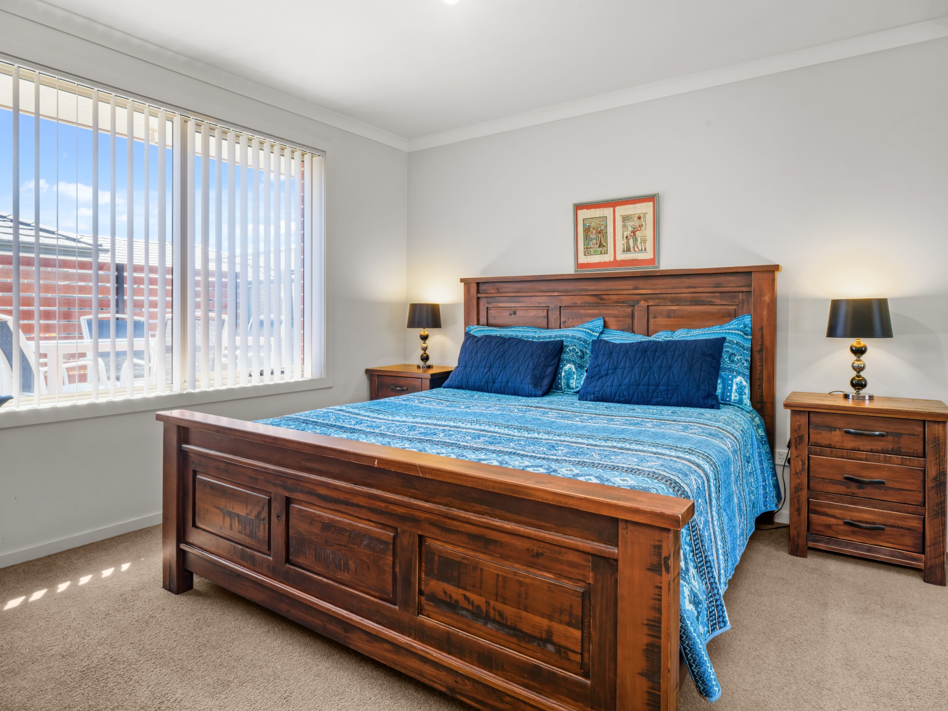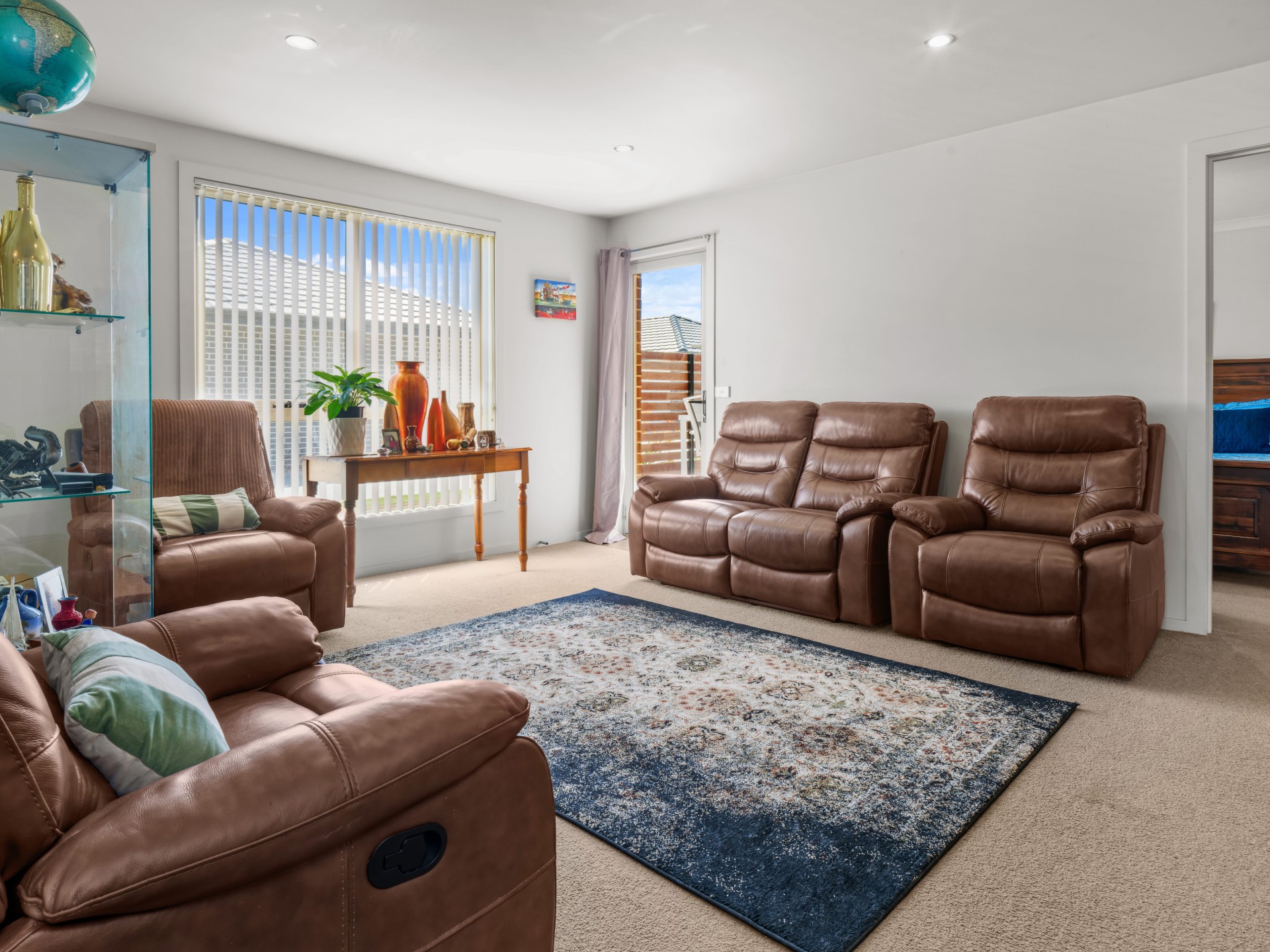 The lounge is a great size and is fitted with a split system heat pump. There is also a connecting doorway to the outside patio area.