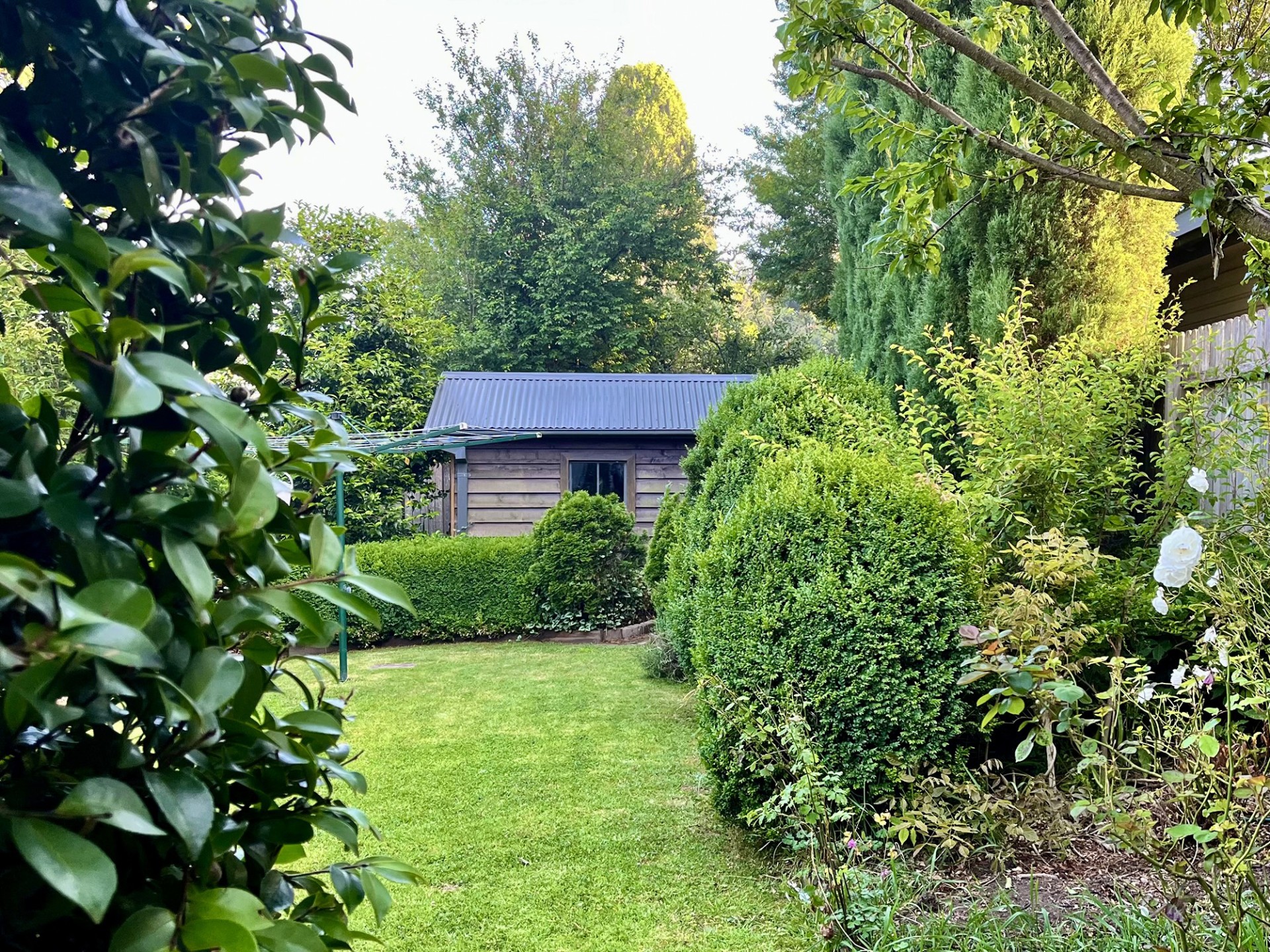 • Lush and level rear lawn surrounded by cool climate plantings.