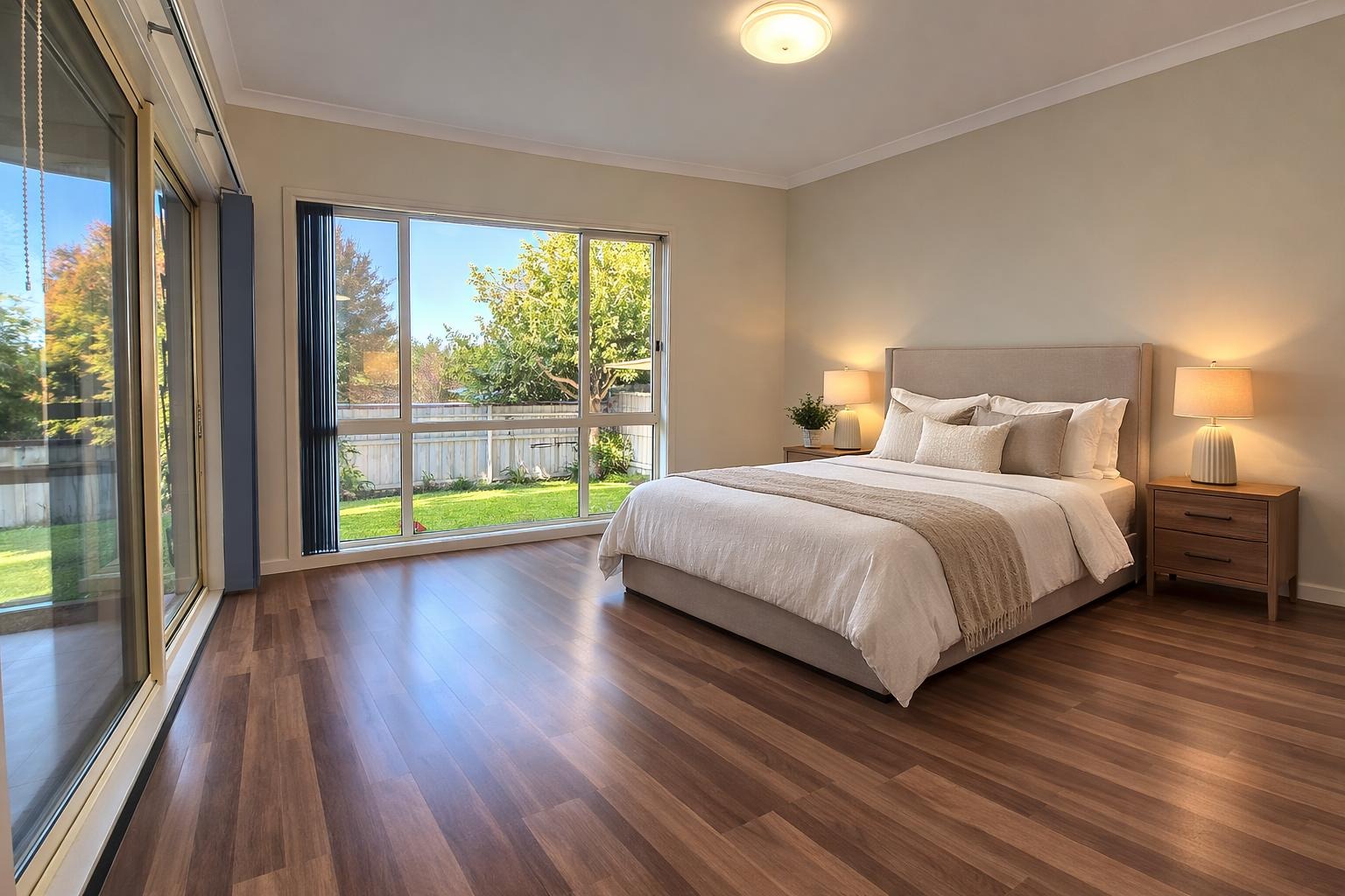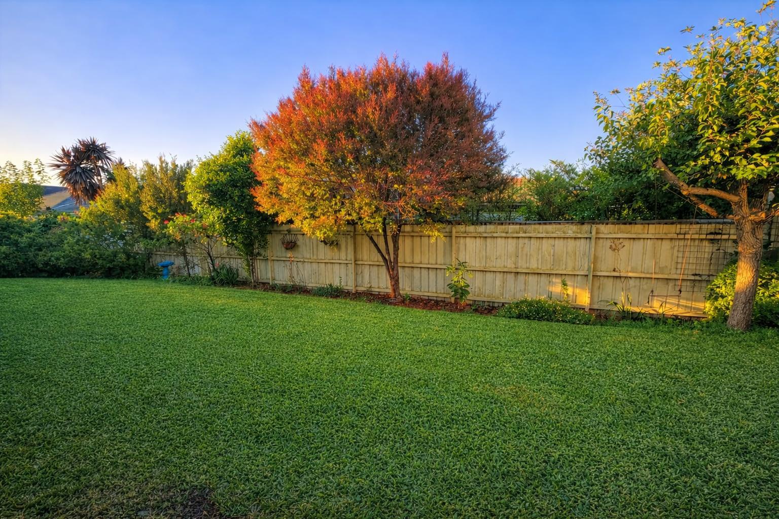 Large backyard with established gardens