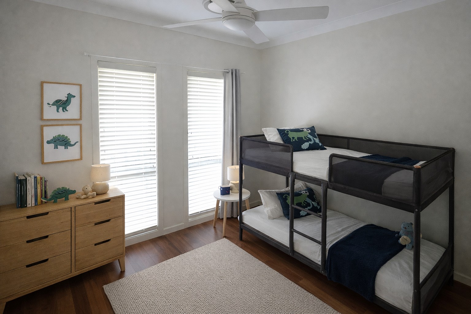 • 4 bedrooms (two with a ceiling fan and three with built-in wardrobes)