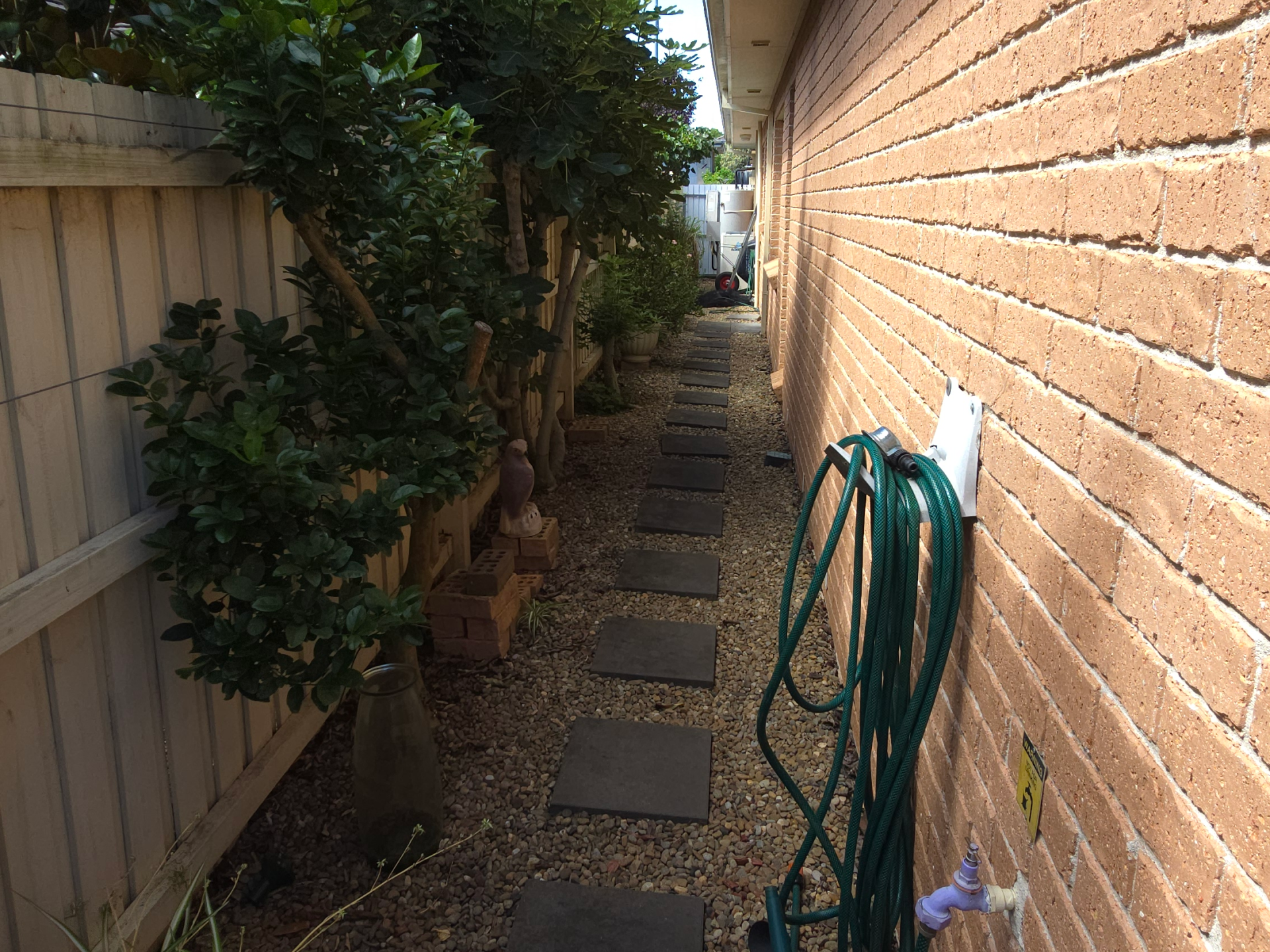 The gardens are well established with a variety of fruit-bearing trees and plants - including lemon, lime, fig, apricot, and two passionfruit vines. The native plants throughout also attract native bird life to the garden on a regular basis. On the western side of the garage, our kitchen garden has nourished cucumber, bean, capsicum and chilli plants, as well as a variety of herbs.
