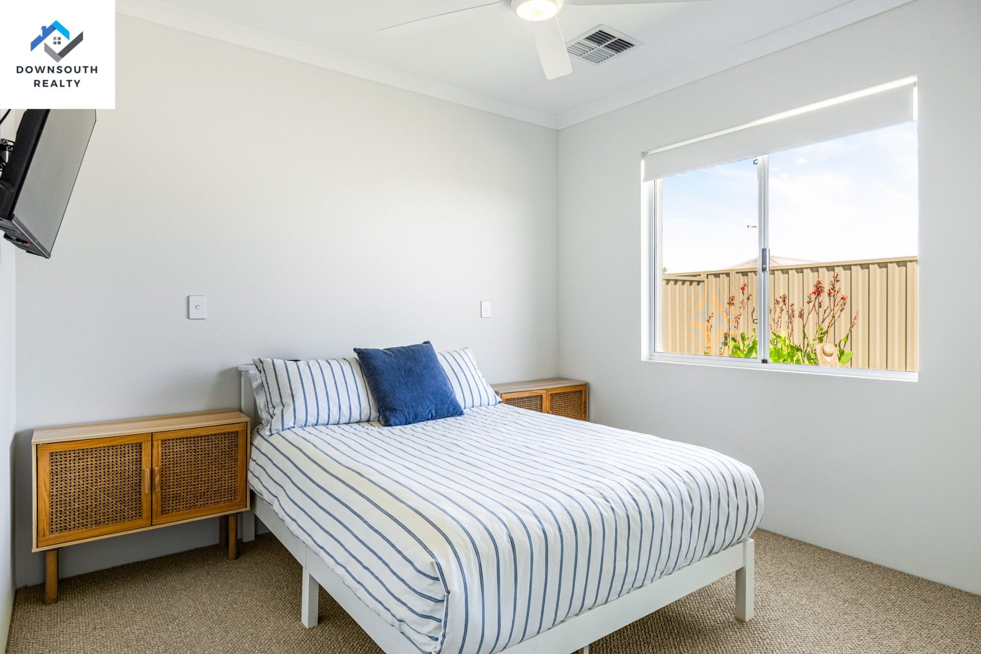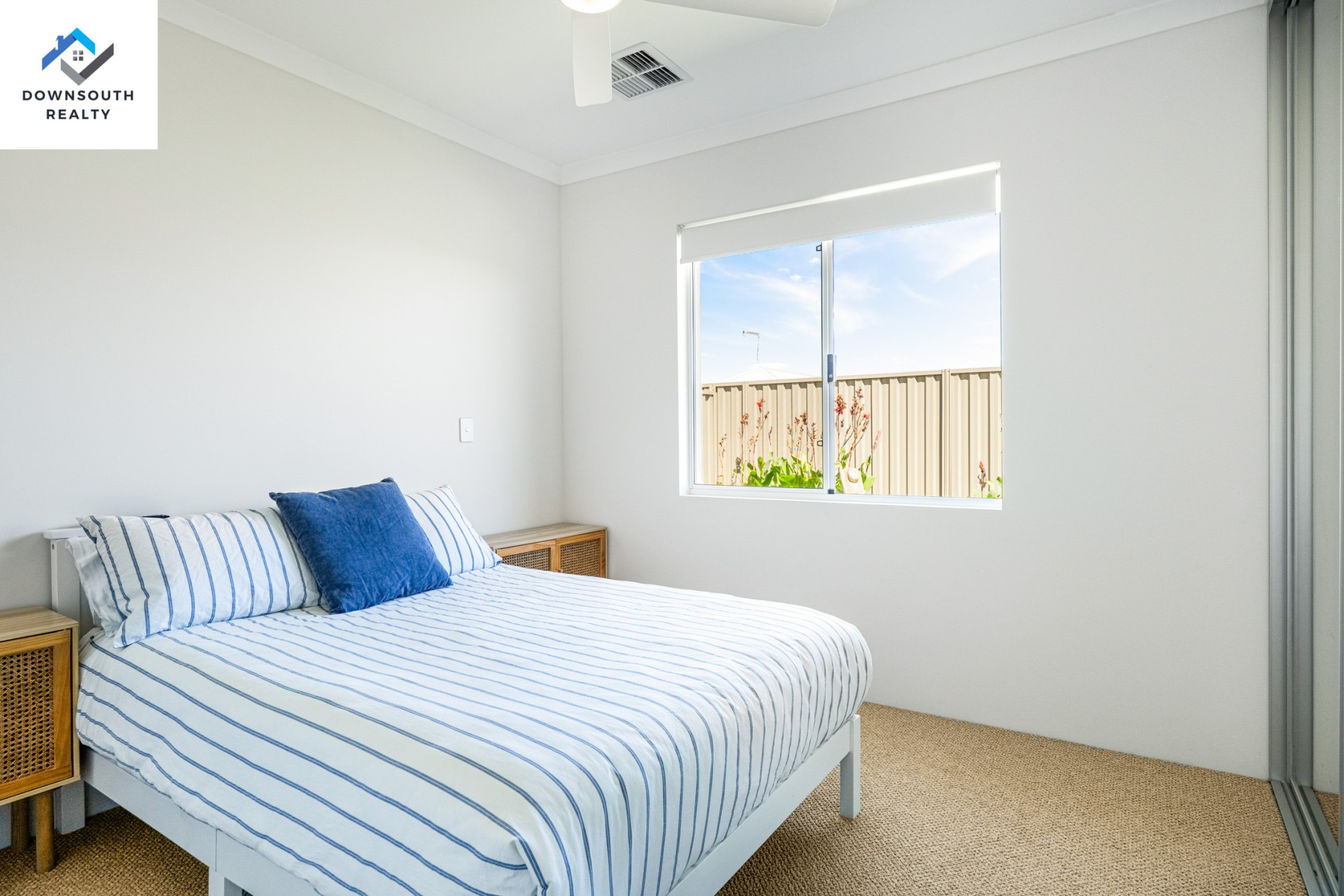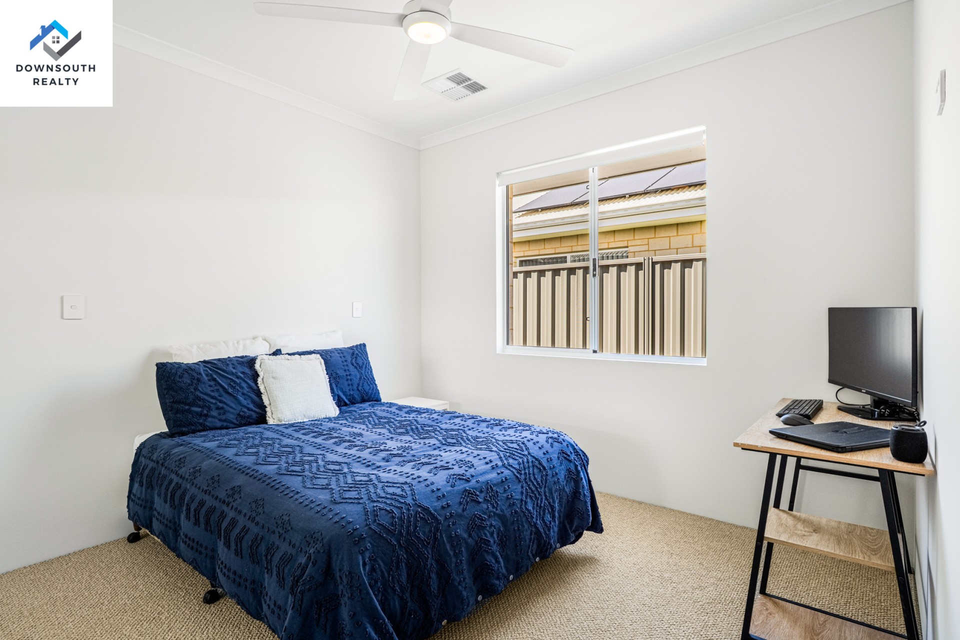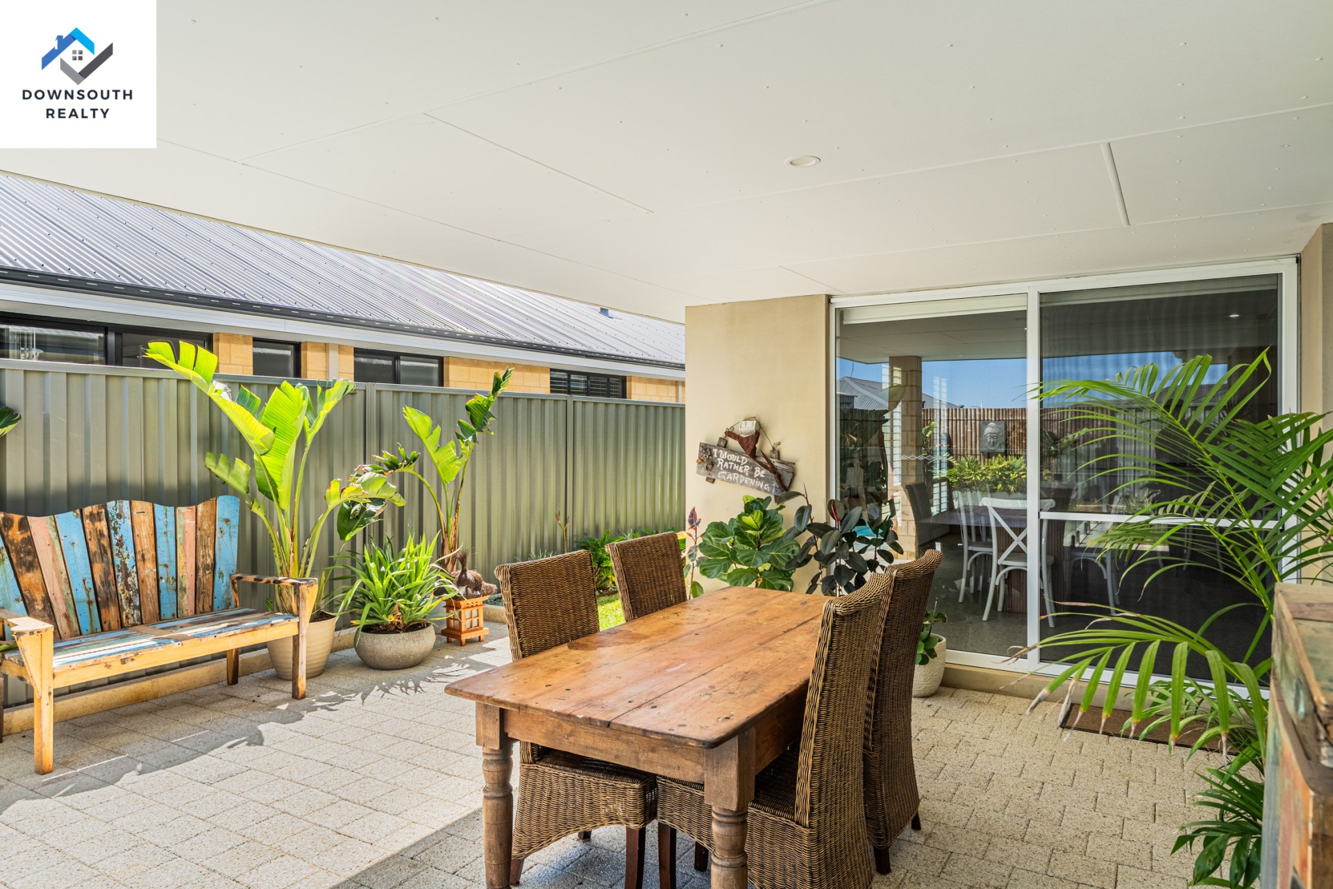 Modern family home at 8 Blueberry Loop, Byford, offers a north-facing design, ducted air conditioning throughout, and higher-than-normal ceilings in the living room. The stone kitchen benchtop with butler's pantry supports effortless hosting, complemented by carpet and tile flooring, instant gas hot water, full reticulated gardens, and sparkling in-ground pool.