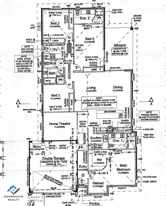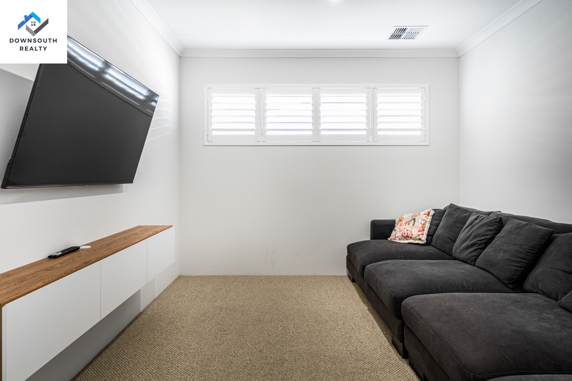 This 4-bedroom property includes 3 bathrooms with 2 being ensuites, a dedicated theatre room, and a double garage for practicality.