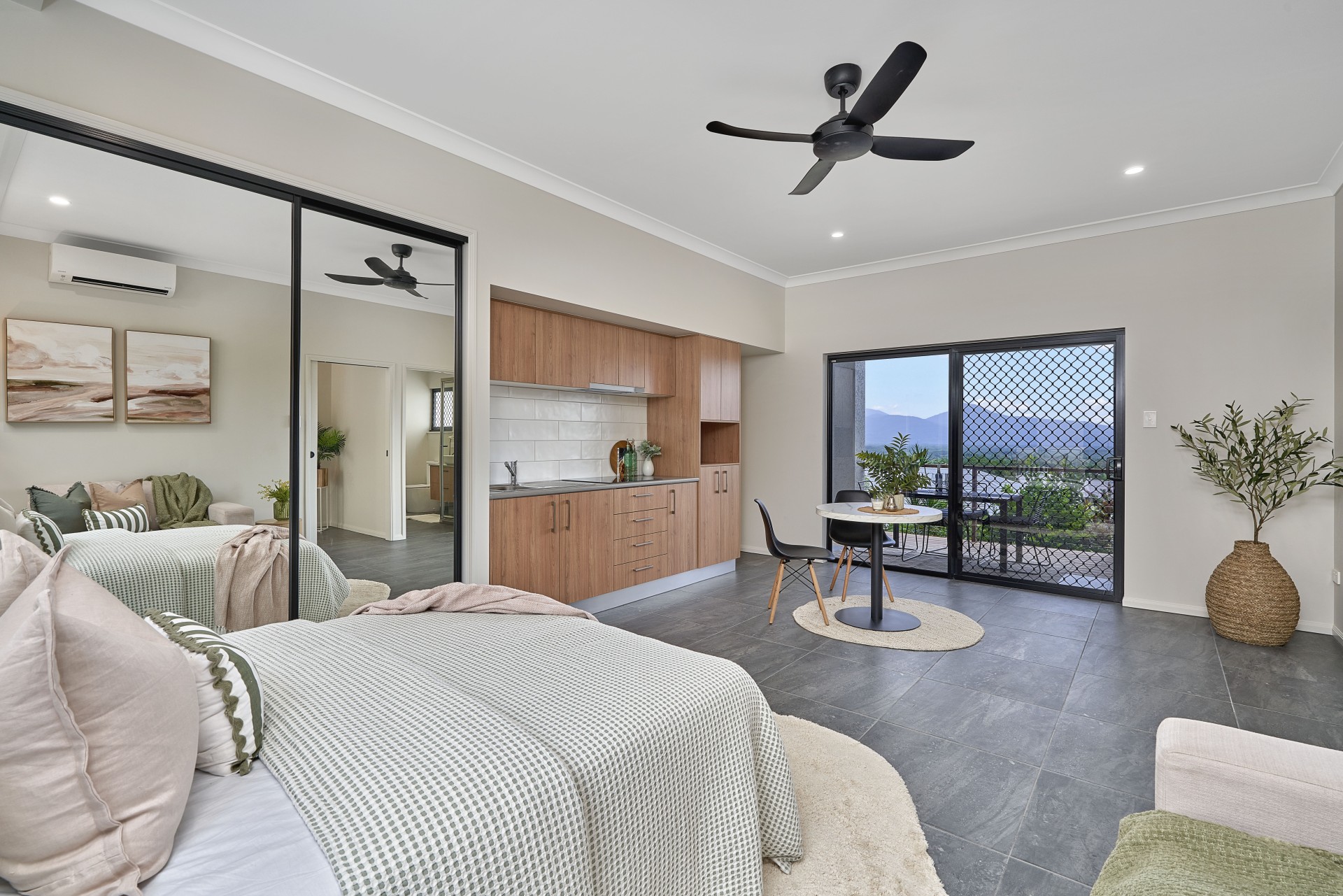 - Ground level self-contained granny flat with independant living and endless opportunities boasting a fully equipped kitchen, built-in-robes and pristine ensuite that features gorgeous tiles, high end finishings and stunning floating vanity