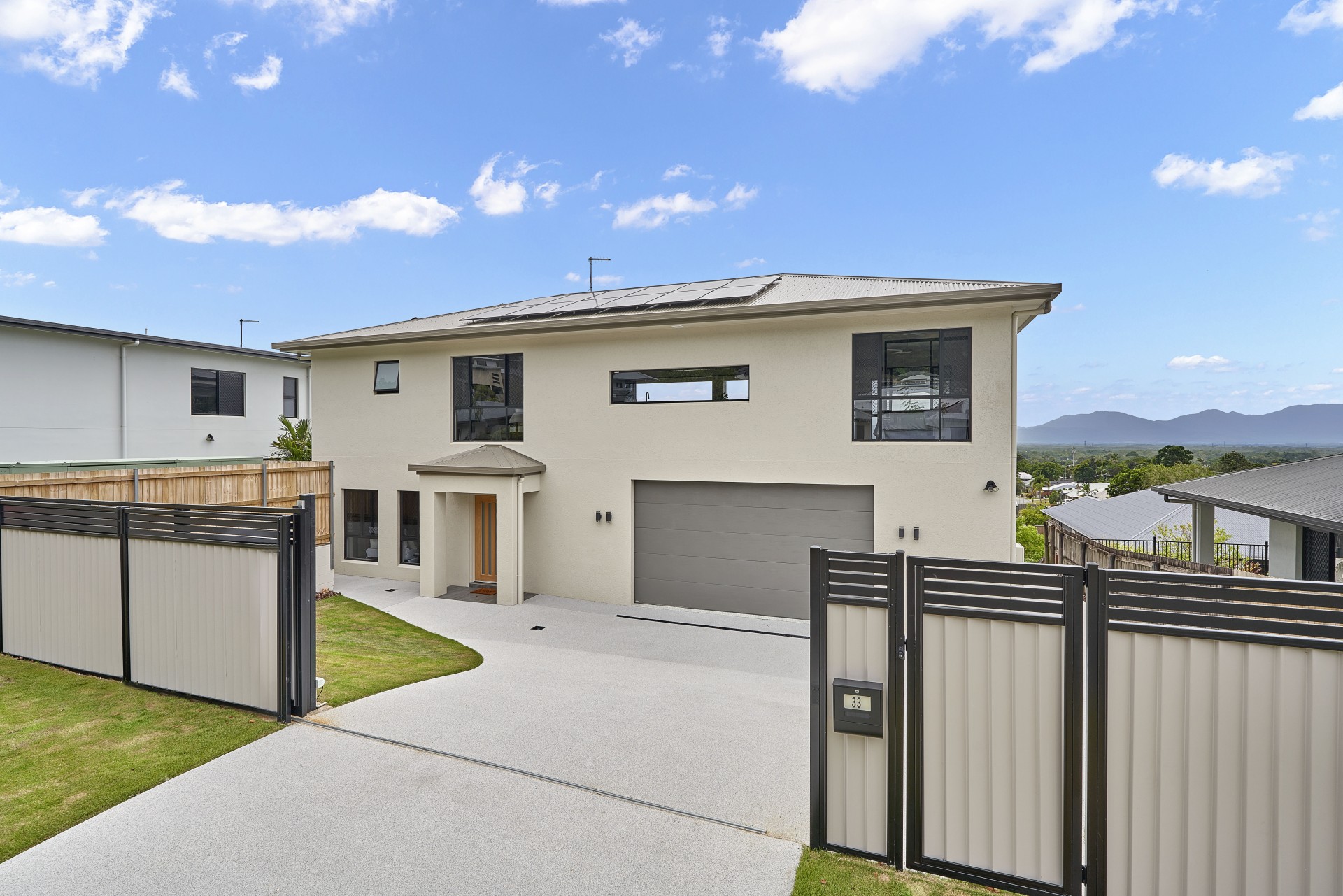 Elevated in a prime position with panoramic, breathtaking views from every angle, 33 Gallery Drive is a brand-new residence that defines luxury living in every detail and is more modern than tomorrow. Immaculately constructed to the highest standard, this seriously striking family masterpiece offers an extraordinary living experience, blending superior craftsmanship with cutting-edge design. The spacious, double-storey floor plan offers granny flat living and is perfectly tailored for family living, with expansive open spaces and a seamless flow between indoor and outdoor areas on all levels. Every inch of this home has been designed to cater to both comfort and elegance, with expansive living zones that effortlessly transition to oversized undercover balconies, perfect for entertaining or simply soaking in the sweeping views. The self-contained granny flat is a standout feature, offering total privacy and versatility, whether for extended family, guests, or as an additional income stream. With impeccable attention to detail, luxurious finishes, a 10kW solar system, liquid tiles, an upgraded driveway with concrete surrounds, 2 seriously striking kitchens, immaculate bathrooms, and an unrivalled position, this residence is more than just a home; it's a lifestyle that redefines the art of living and is something this current market rarely has to offer. Best move quickly.