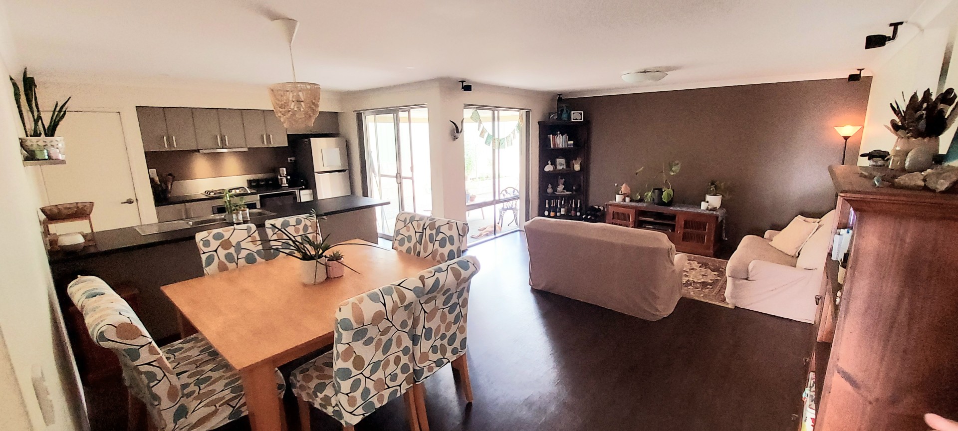 The kitchen is a culinary delight, featuring ample storage space, a gas cooktop, a convenient microwave nook, and a dishwasher for effortless cleanup. Entertaining is a breeze with direct access to the covered outdoor area, perfect for alfresco dining or simply unwinding in the fresh air.
