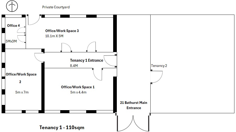 *Option to expand 110sqm of Tenancy 1 floor space to 180sqm, by adding adjoining Tenancy 2 with 70sqm (Ref. advert for Tenancy 2/21 Bathurst Str)