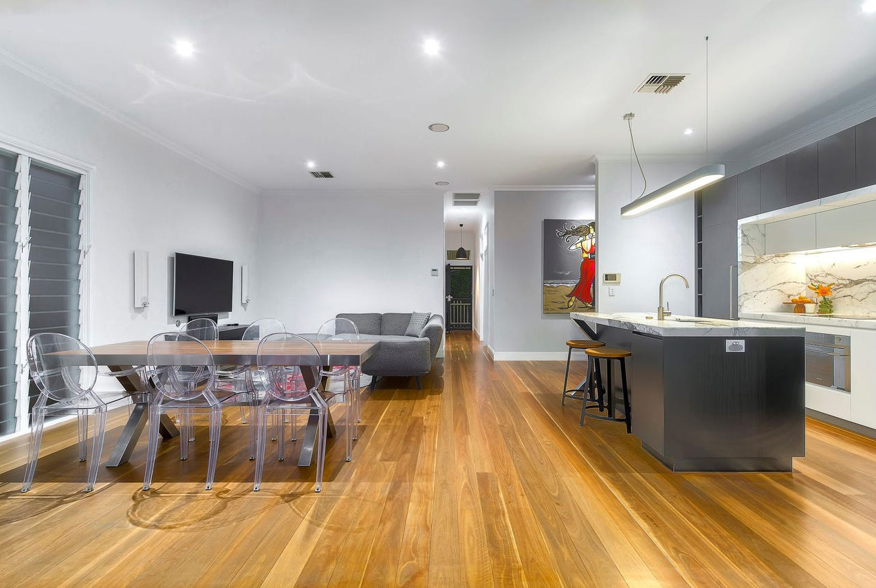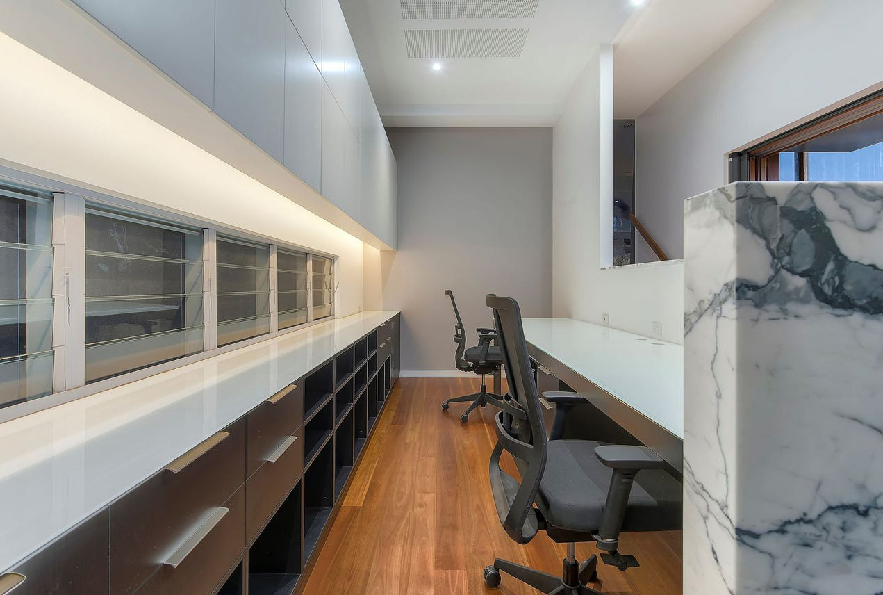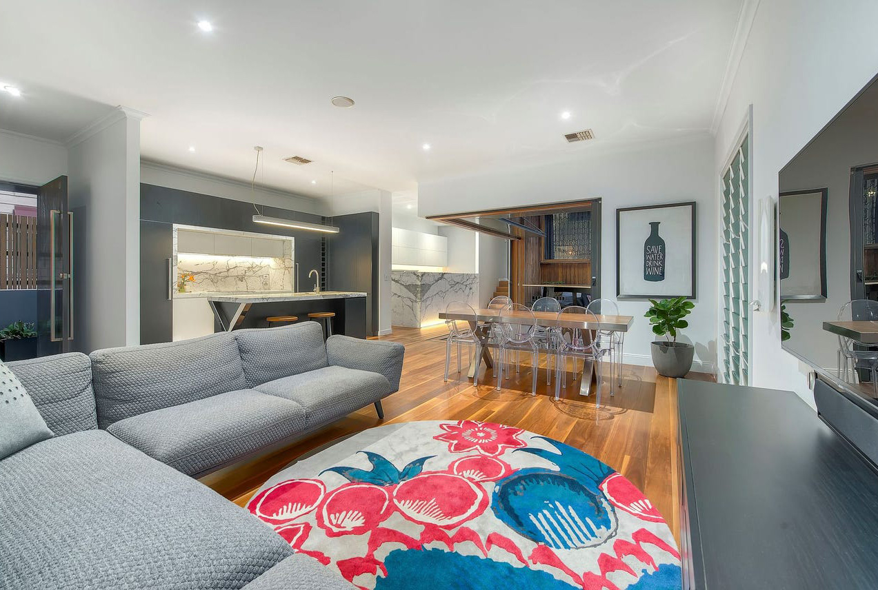 Configured for a professional couple who work from home, a young family, or those who love to entertain, the home embraces natural cross-ventilation through generous sliders that invite cooling breezes throughout. Every major living space spills toward the courtyard, reinforcing an effortless indoor-outdoor rhythm and an easy, elevated way of living. At the centre of the home, the courtyard becomes both retreat and social heart, perfect for slow mornings or evenings that flow into alfresco dining with family and friends. Inside, custom joinery maximises the footprint, with the kitchen forming a natural gathering point at the core of the cottage.