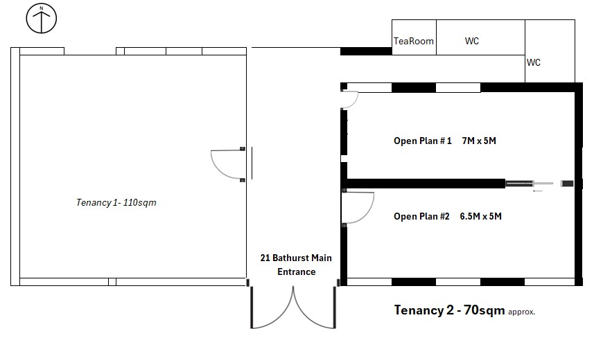 *Option to expand 70sqm of Tenancy 2 floor space to 180sqm, by adding adjoining Tenancy 1 with 110sqm (Ref. advert for Tenancy 1/21 Bathurst Str)