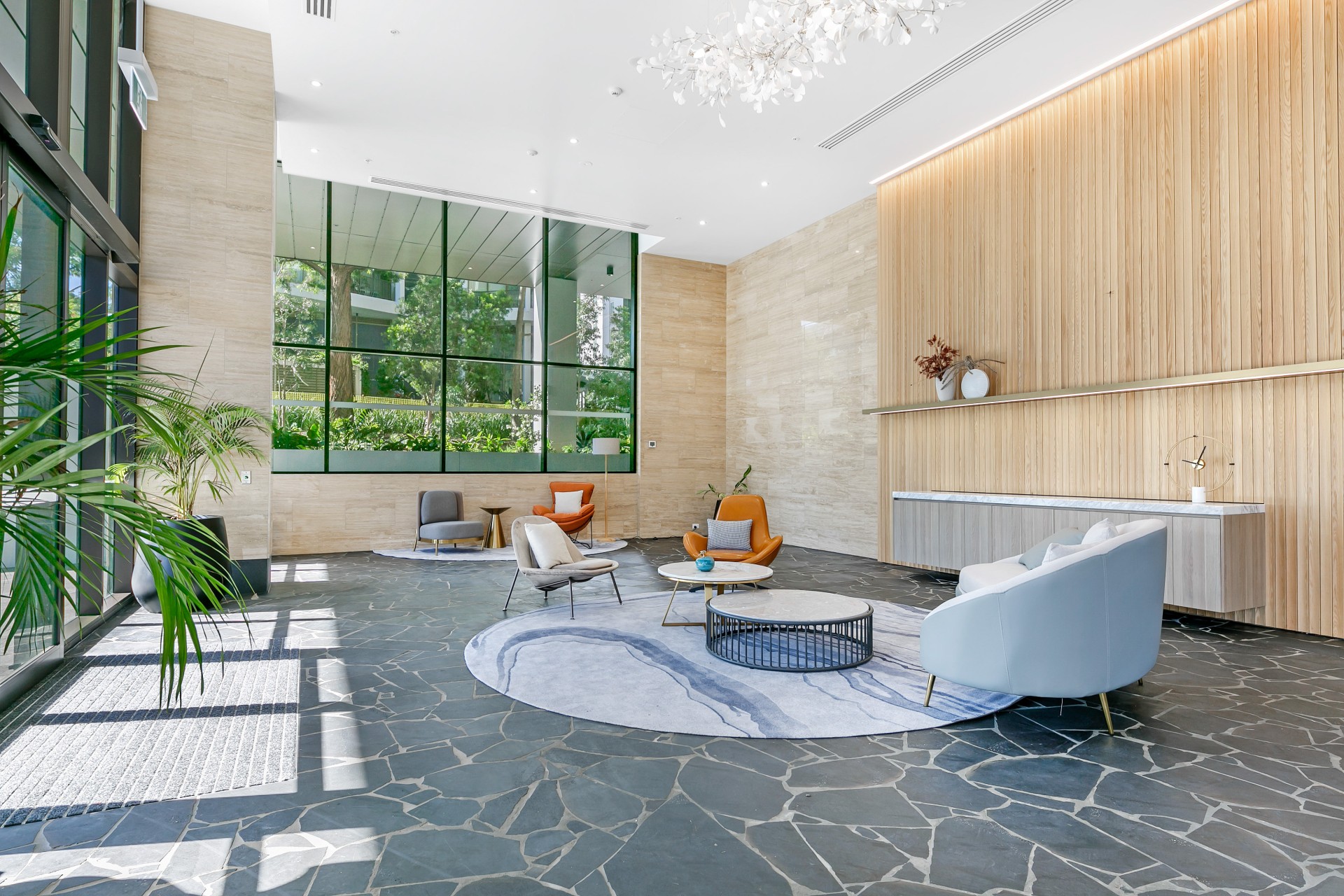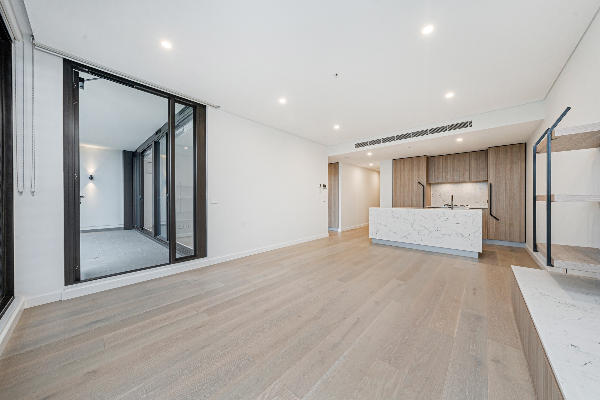 - Luxurious Interiors: The apartment is presented in excellent condition featuring a modern kitchen with stone benchtops, quality appliances, and sleek cabinetry flowing seamlessly into the light-filled living and dining area.