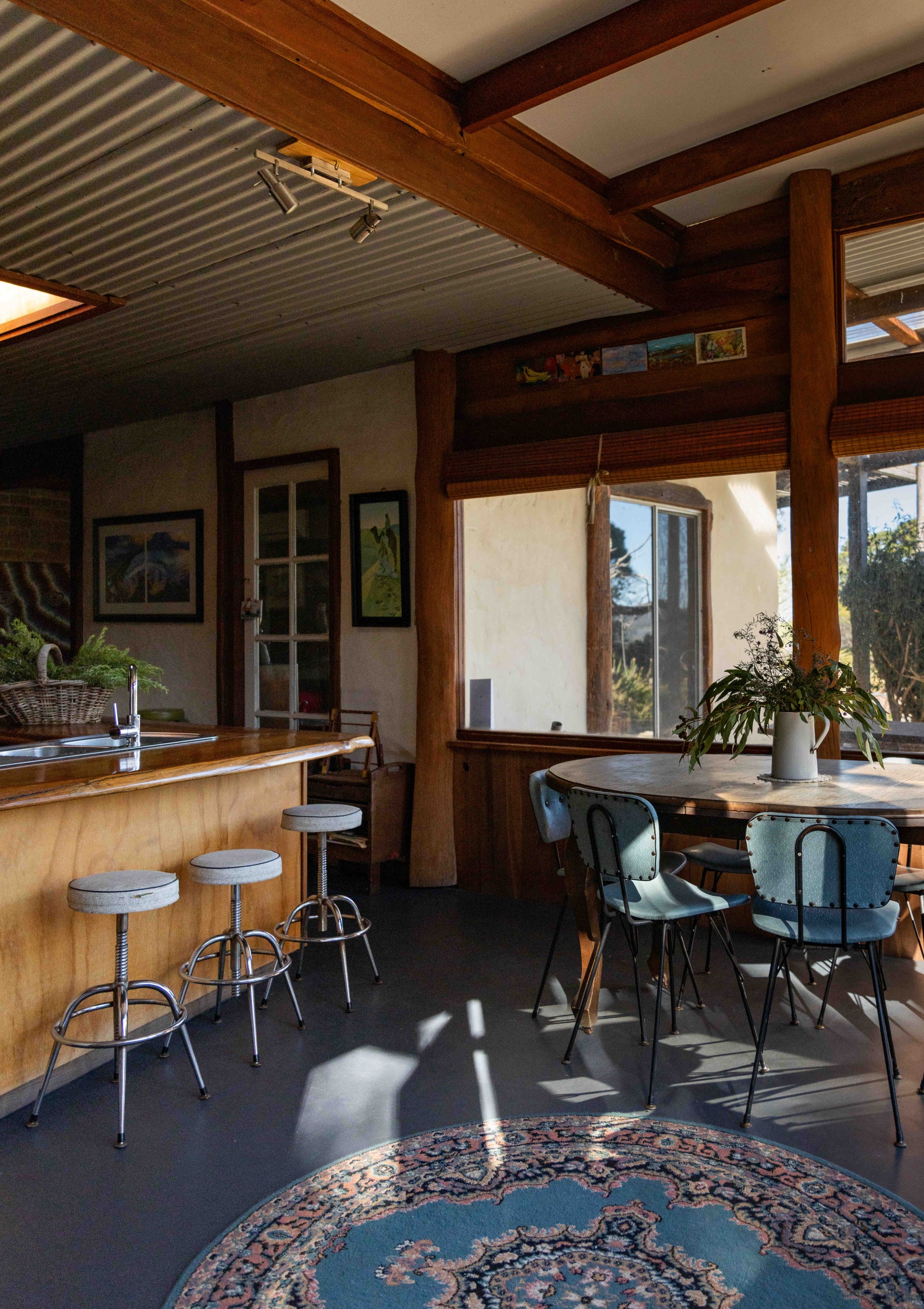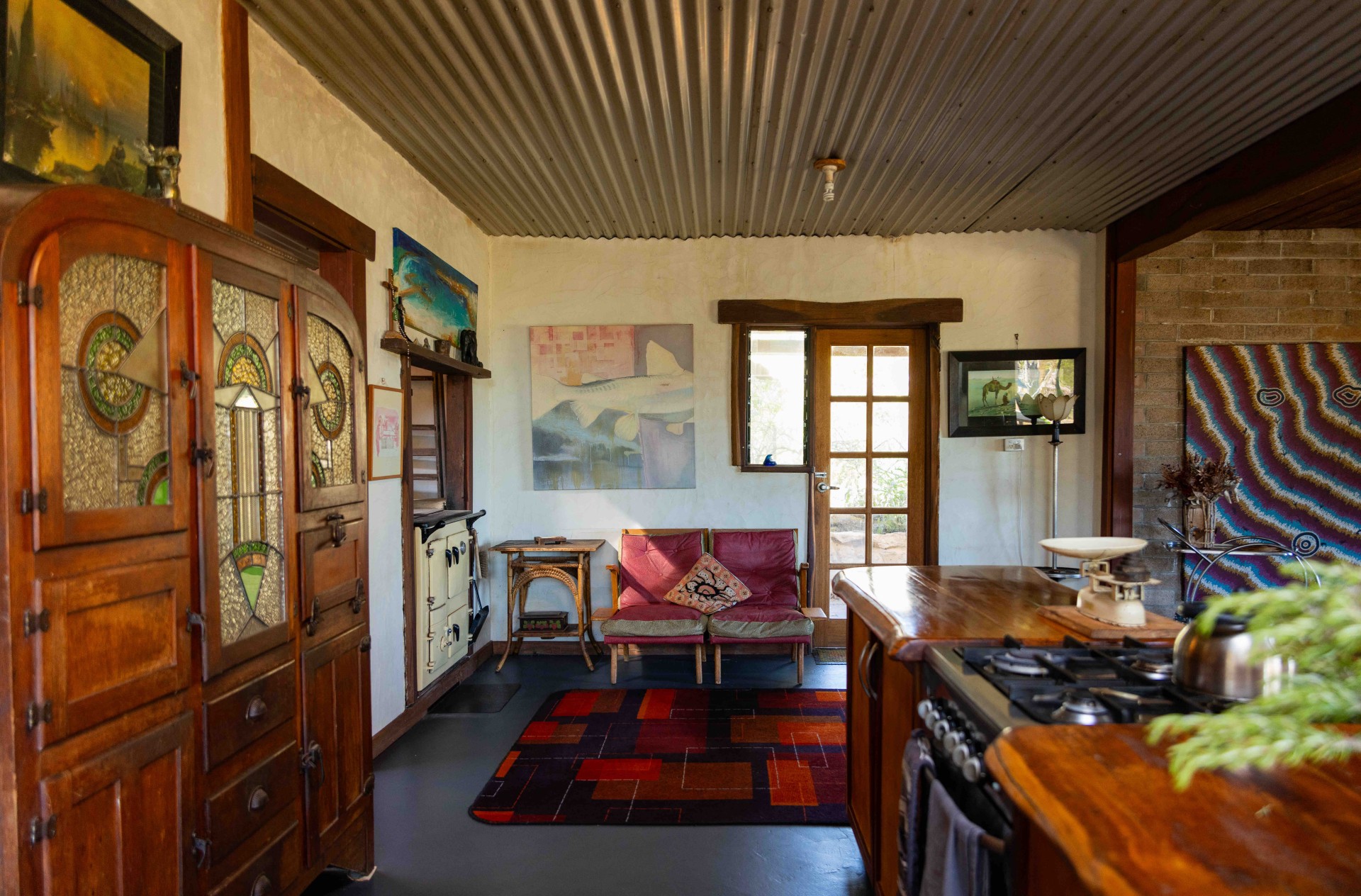 - Hand-Crafted Kitchen: A large, light-filled kitchen features reclaimed jetty timber benches, wine racks, a skylight, gas cooktop, electric oven, slow combustion wood oven, and an expansive walk-in pantry, perfect for culinary enthusiasts, entertainers or homesteaders.