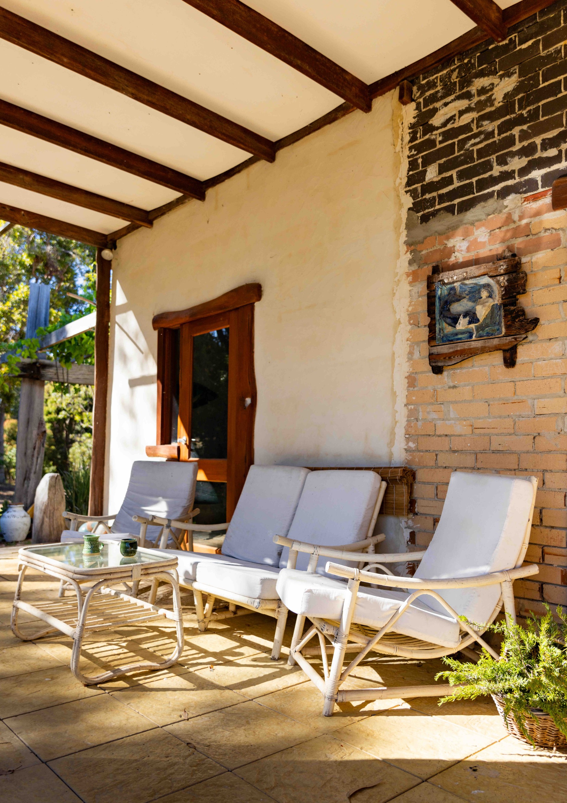 - Peaceful Bathroom: features an oversized bath, timber benches, shelving and doors connecting the garden as well as interior of cottage.