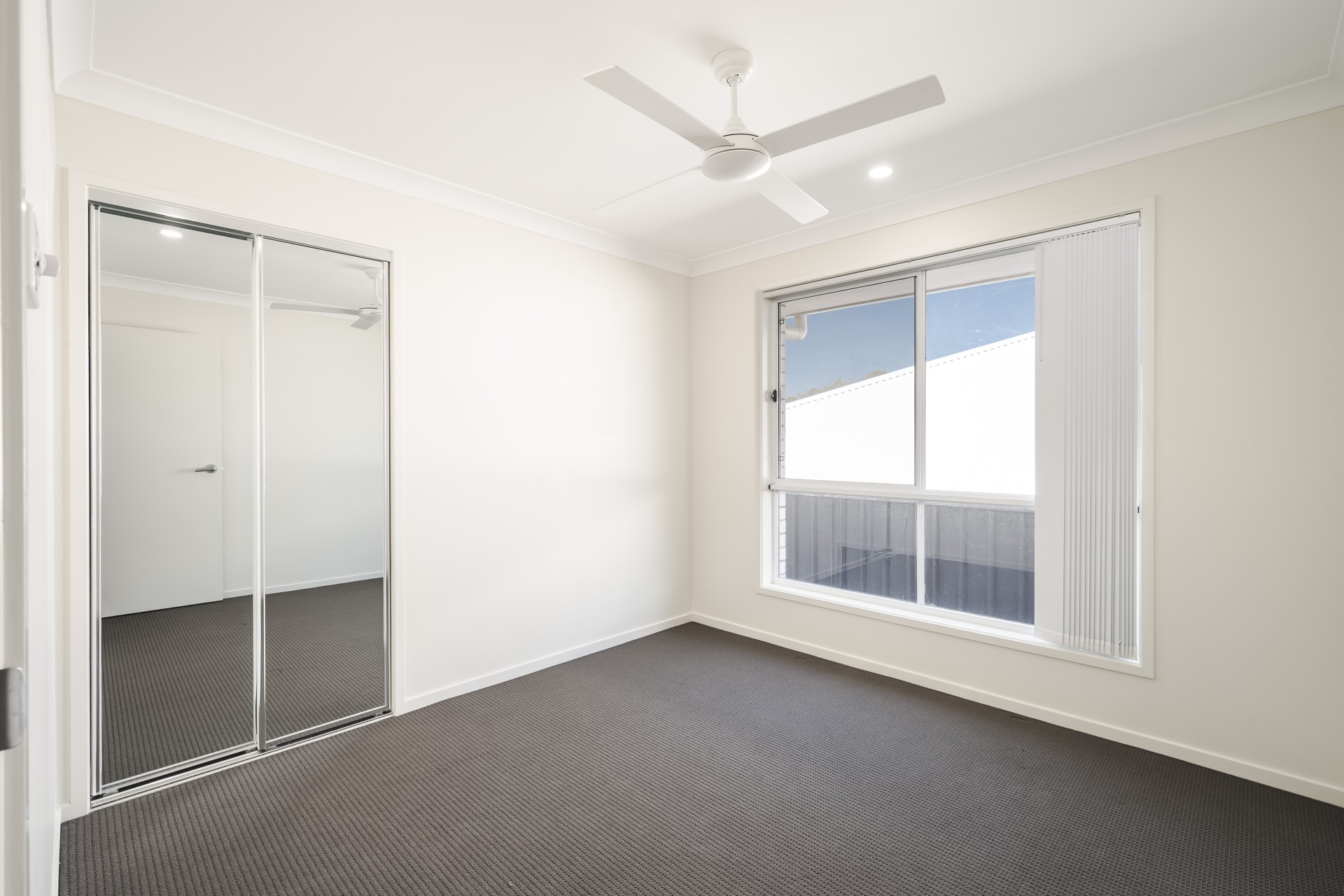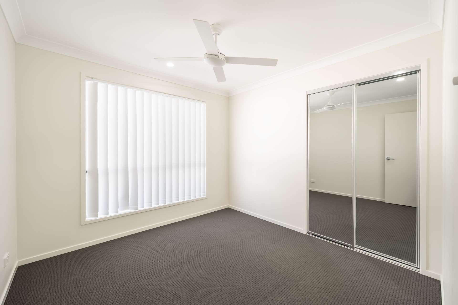 At the centre, the kitchen offers gas cooking and plentiful pantry storage, positioned to keep everything within reach. The master bedroom offers a soft retreat with its own ensuite, walk-in wardrobe, ceiling fan, and plush carpet underfoot with a view to the backyard.